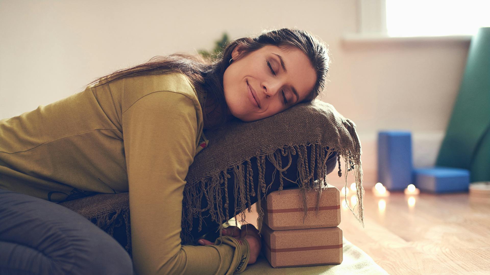 Try this exercise: Place your elbows on a supportive surface and catch your temples firmly with the palms of your hands. Let your head gradually release more and more, becoming heavier in your hands over the next minute; let your jaw go slack. Can you see how the stability provided by your hands enables a release that becomes ever more powerful the longer you stay? You may have thought that you were relaxing at first, but the longer you remained in the pose, the more you could trust and let go. This is a tiny example of what happens to your whole body in increasing waves of restfulness as you lie supported in a Restorative Yoga class.