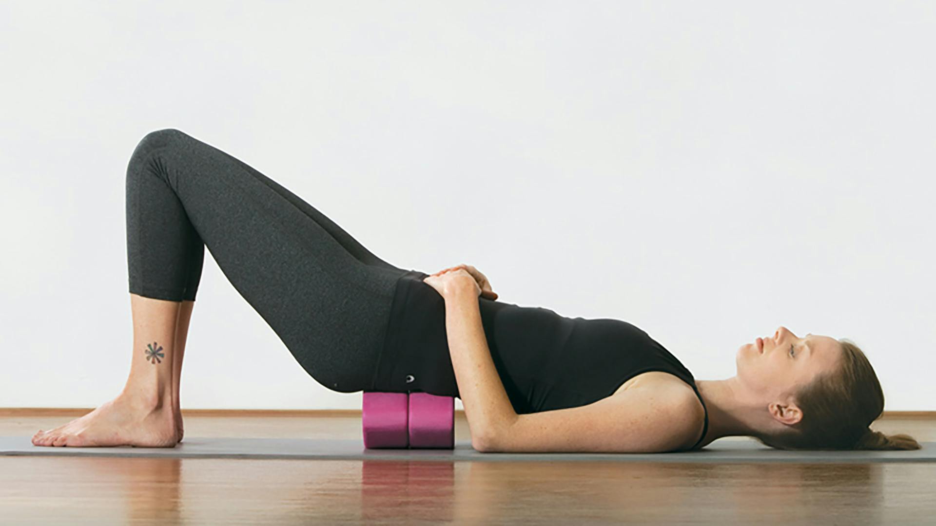 Place two Eggs on your sacrum, in line with your pelvis. You’ll feel a lift when the Egg lines up with the top of the sacrum. Rock your pelvis gently from side to side to loosen your low back and hip flexors. As the body releases, take your legs farther apart and bring your right knee toward your left ankle for a deeper hip opener. This pose releases tension in the low back and pelvis and relieves sacroiliac pain.