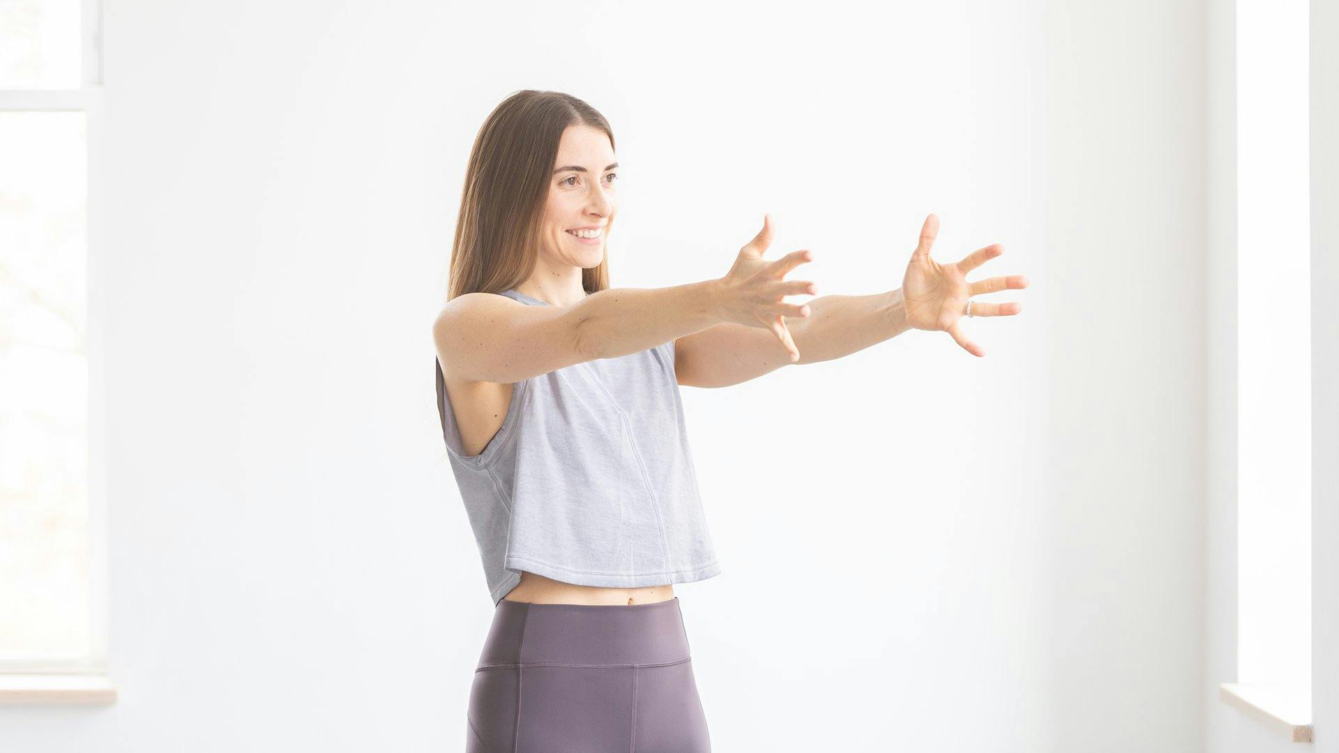 For more intensity, lift your arms overhead (or as high as you comfortably can). Hold for a few breaths.