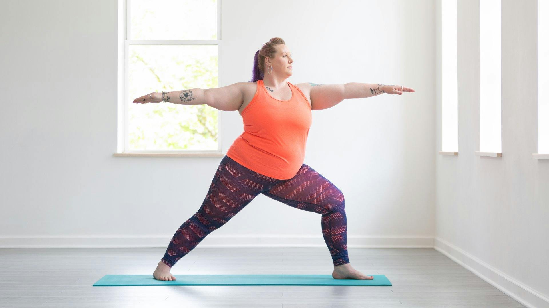 Warrior II and extended side angle strengthen these hip muscles. So does the action of pressing the legs outward into a strap while in mountain pose—one of many hip-strengthening strategies described in this sequence (which addresses, among other things, knee pain that may be caused by knees that track inward).