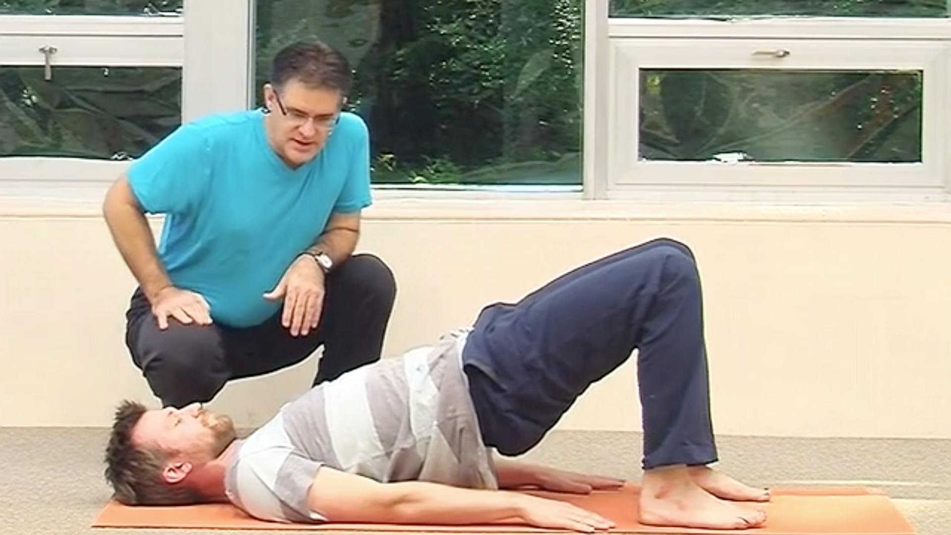 Develop the ability to see your students skillfully. Begin by assessing a student’s body in a basic pose. Using the bridge pose, for example, you can determine the student’s readiness for the shoulder stand and further postures to advance the student’s practice. Greg evaluates various students in bridge pose to see if they are ready to move on to more advanced backbends or inversions.
