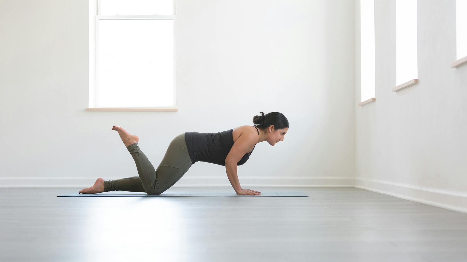 This variation of chaturanga applies minimal load to your arms and shoulders, so it's a great place to start to build up tissue capacity to maintain load.