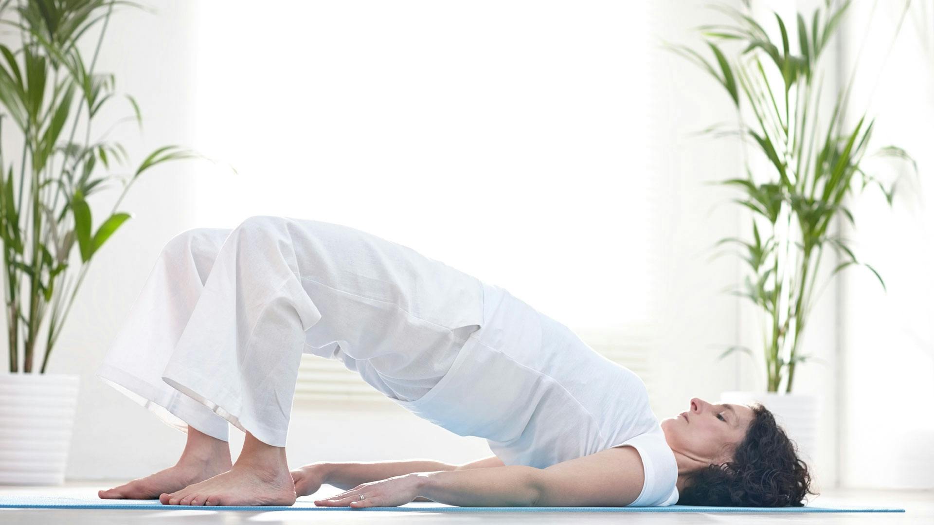 If your mind protests, or if the sensations are so unusual that you want out, remember that your legs hold you up every day. They really can easily support your hips an inch off the floor for a minute or two. Recognize mind chatter for what it is: resistance to the opening up of deep places in your body. Invite yourself back to your breath and mantra. Hang there, and let the bridge work.