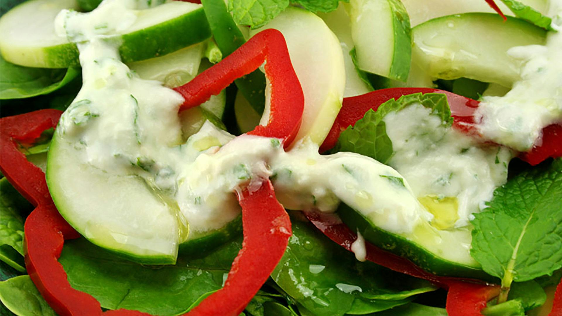 Preparation time: 10 minutes. Good for all seasons, most appropriate when fresh basil is in season. Sattvic, neutral for all doshas with salad.