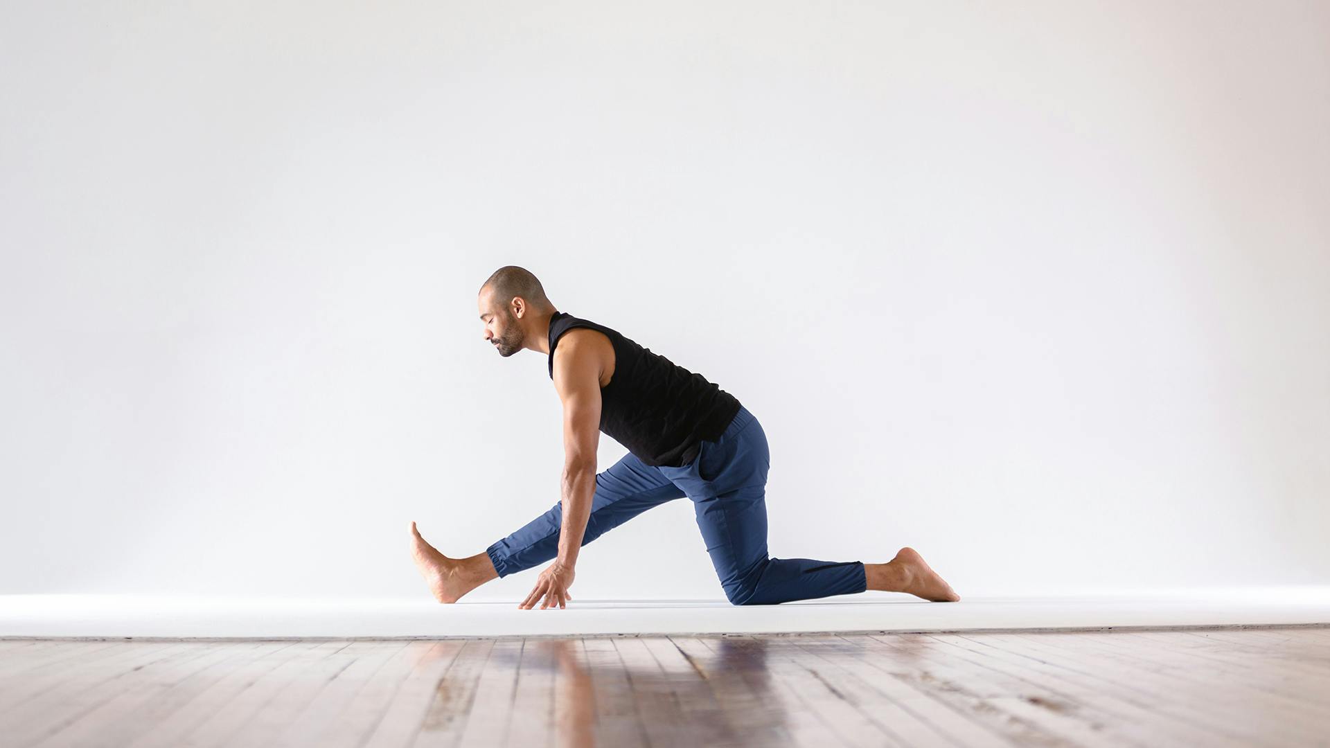 If you’d like to increase the load on your hamstrings in this pose, you can place a blanket or a sandbag over your sacrum or your back leg to add more weight and resistance to your eccentric lengthening.