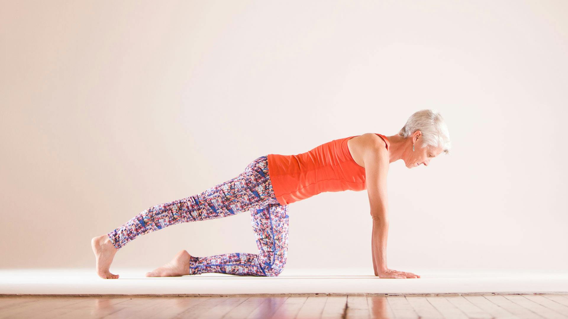 Tabletop is a good pose to set up optimal shoulder and neck alignment while bearing some weight in the hands, and the alignment here serves as a template for the more demanding weight-bearing poses like plank and chaturanga.