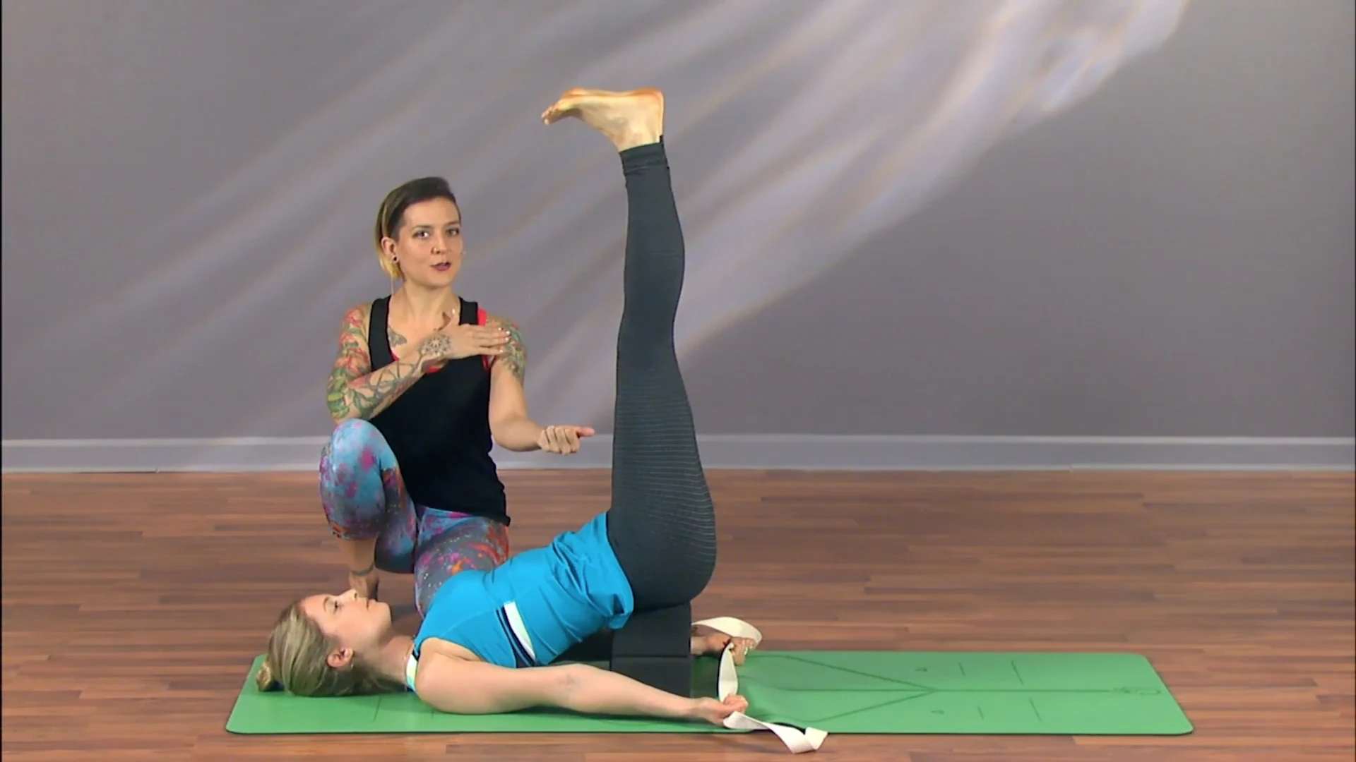 Beginning in bridge, Jessica will show you how to use blocks and a strap to find your strongest, most supported salamba sarvangasana ever!