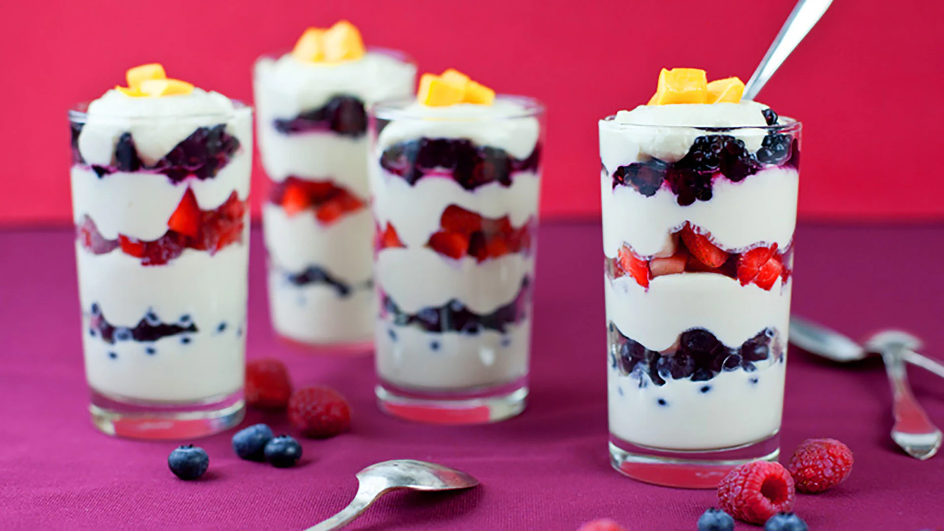 Chop your favorite fruit up into bite sized chunks, mix together, and place a dollop of paneer whip on top.