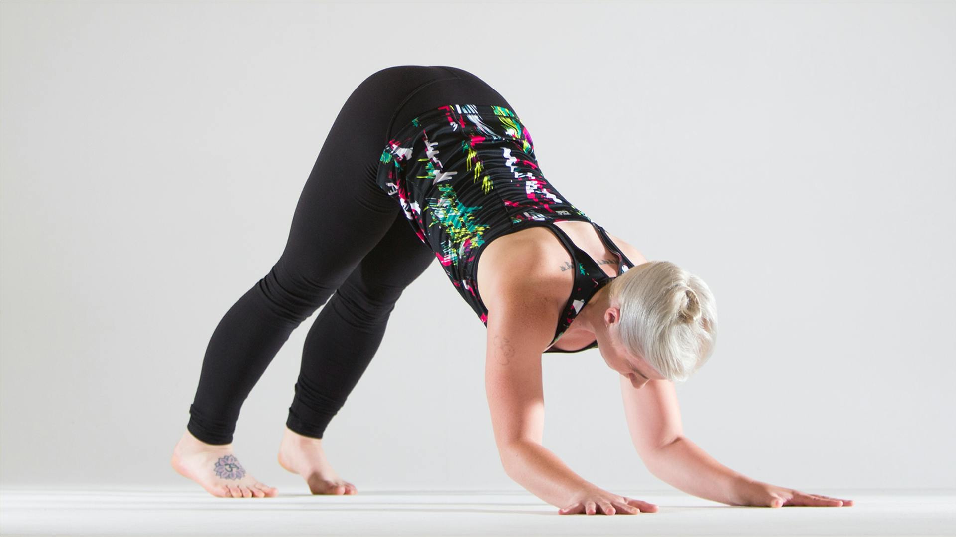 Turbo dog push-ups are inspired by the pose turbo dog from Forrest Yoga and are a superb way to build upper-body strength (particularly as far as the lats, triceps, and serratus anterior are concerned) and to perfect your parallel forearms for pincha, but they can be quite challenging (after all, that’s kind of the point!).