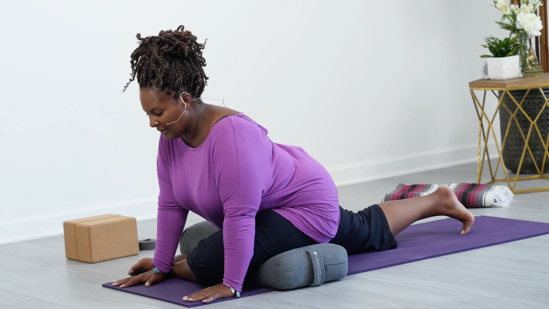 Protect your knees and support your hips! Join Dianne and learn various ways you can modify pigeon (with the use of props!) to make this classic staple posture far more comfortable and accessible. Props: 2 blocks, a meditation cushion, a bolster