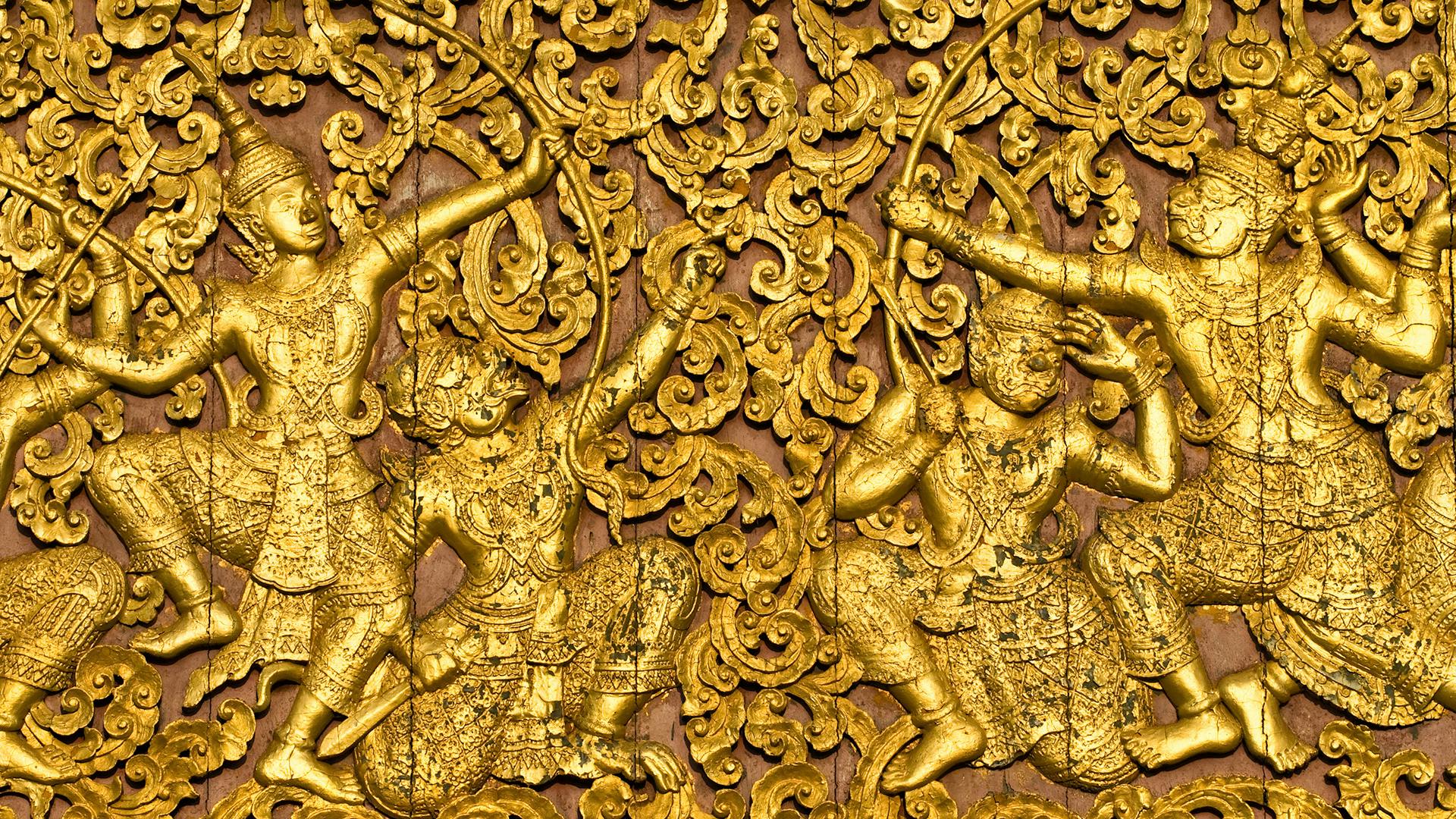 There are several versions of the Ramayana, differing subtly as to how this conflict between devotion and dharma is viewed. One version raises the question of whether Rama’s father had the right to dethrone Rama, who as the eldest son was entitled to the crown and whose coronation had already been declared by the royal assembly as well as the king. Rama’s father had made two conflicting promises—the first to Rama, the second to Kaikeyi. Honoring either will bring pain to someone, infringing on another great virtue, nonviolence. In Valmiki’s version, the sage Jabali advises Rama to disregard his father’s wishes in favor of a higher good—serving his subjects and claiming his birthright—for Rama’s departure has caused his father to die of grief and brought pain to his mother, his brothers, and his subjects. Still another viewpoint is that Rama’s purpose in life (another way to define dharma) was to conquer Ravana, the king of the demon race, and that Rama’s exile was the necessary catalyst for this dharma to be fulfilled.