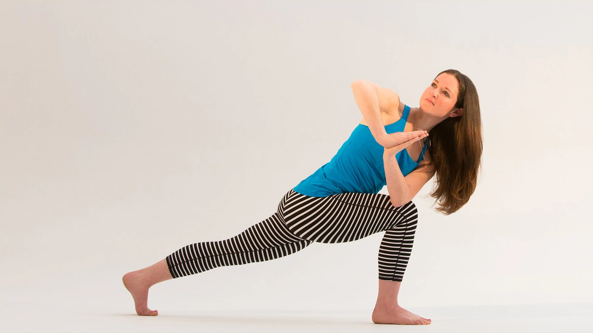 In general, twisted poses can be tricky. But parivrtta anjaneyasana, a twisted lunge, comes with its own unique set of challenges. For one thing, just balancing in the pose can be quite the challenge. And even once we’ve found our balance, there’s often still confusion about how to initiate the twist. Not to mention that for a lot of people, being in the twist just tends to be uncomfortable—with the feeling of restricted breath and tightness around the rib cage. We can end up feeling stuck, which is often the result of one common mistake: backbending right before we rotate into the twist.