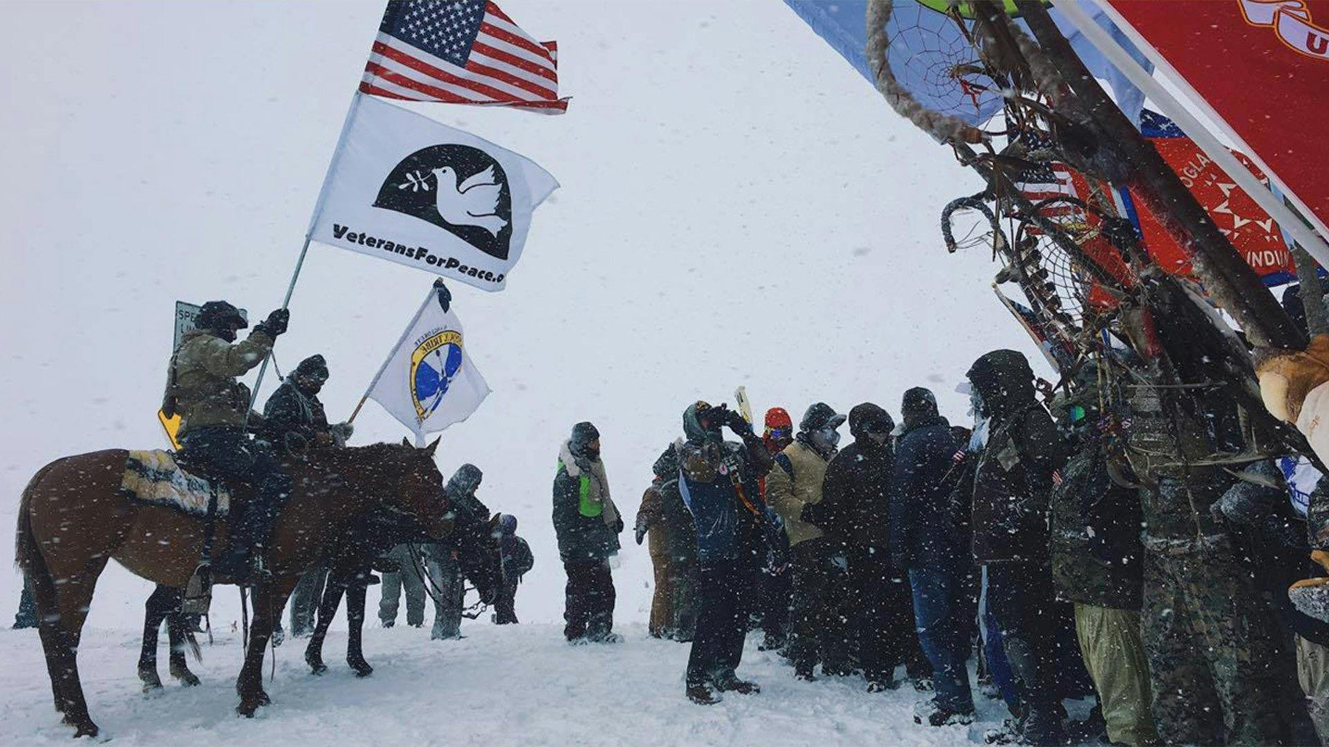 Fast forward to the present day. Despite a pervasive nationwide media blackout, news of the native struggle against Big Oil’s DAPL has spread—throughout the country and around the world. The Standing Rock Reservation has quickly become the largest gathering of indigenous peoples in the history of our nation, with more than 300 recognized tribes represented—from Hawaii to Alaska and around the world. With non-native participation, including the arrival of more than 2,000 veterans during the weekend of December 4, it is estimated that the population of the camp is now close to 15,000.