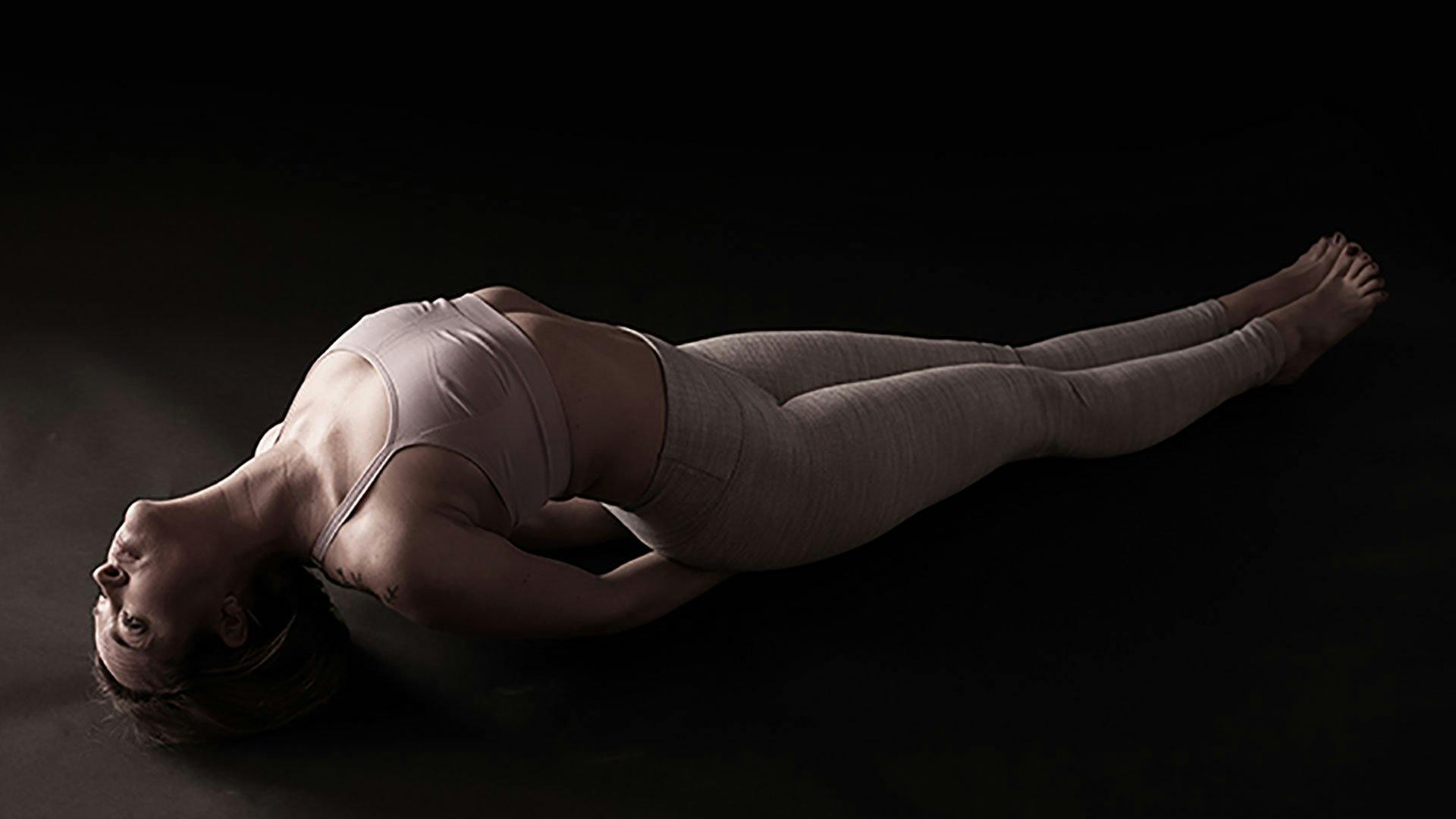 Keep pressing your forearms down and lifting the tips of your shoulder blades up toward your heart to support the lift of your breastbone. Draw your kidneys and vertebral column in toward the front body, without gripping your back muscles or digging the rim of your sacrum into your back. Draw the tops of your thighbones down. Intend your tailbone toward your heels. Let go of all muscular action that is not directly involved with maintaining the shape of the asana: Soften your eyes, jaw, and throat. Imagine yourself floating, supported by the living water beneath you. Stay for as long as you are comfortable, then lower your chest and head to the floor, remove your hands from underneath, and roll slowly to a seated position.
