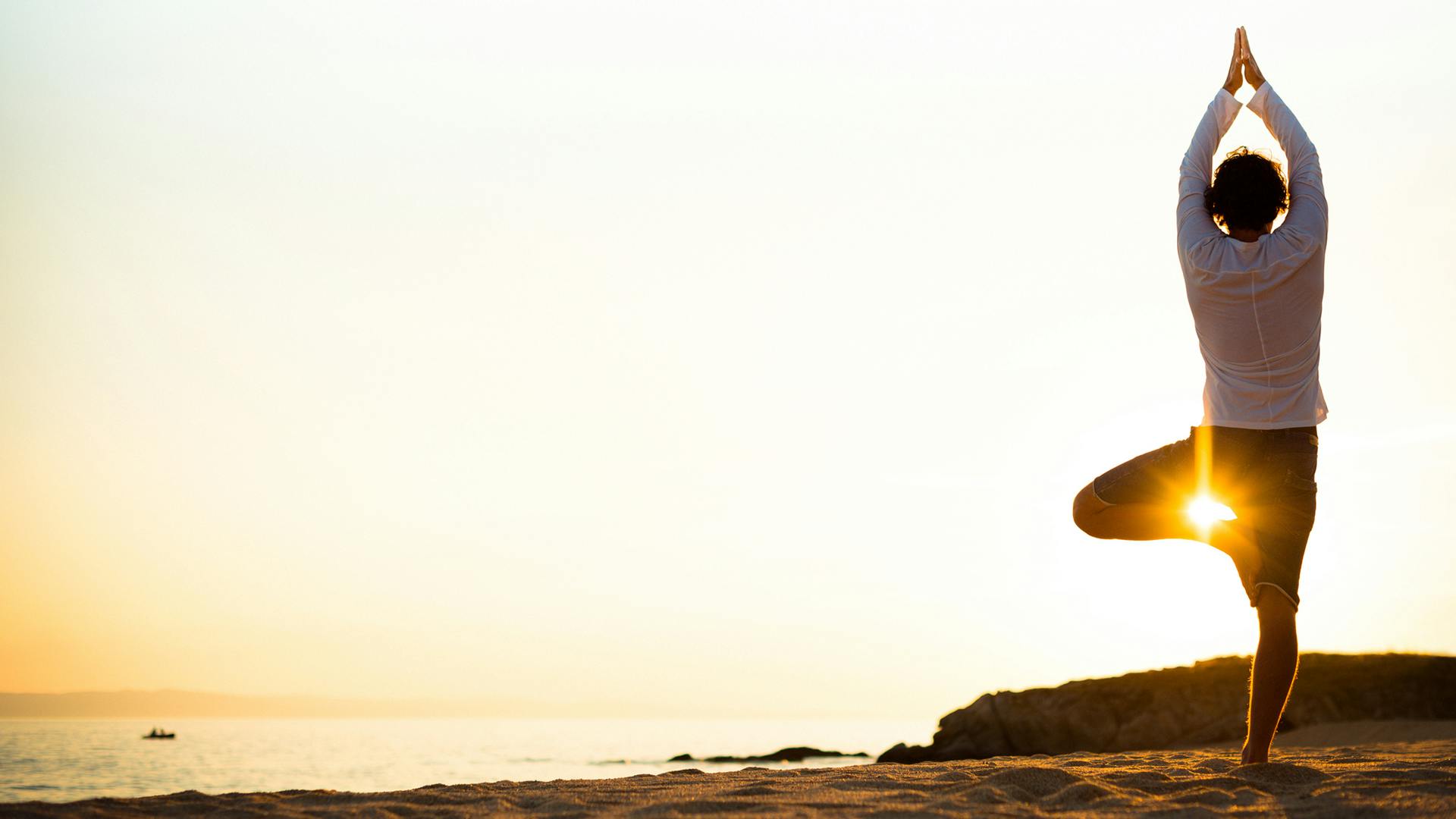 With your left foot planted on your mat, open your right hip and choose the placement of your right foot (onto the floor, a block, your opposite ankle, calf, or inner thigh). Draw your hands together in prayer at your heart and find your balance. When you feel stable and settled, open your arms out to the side so they are parallel to the floor. Turn your palms up to feel more energized, or down to feel more grounded.