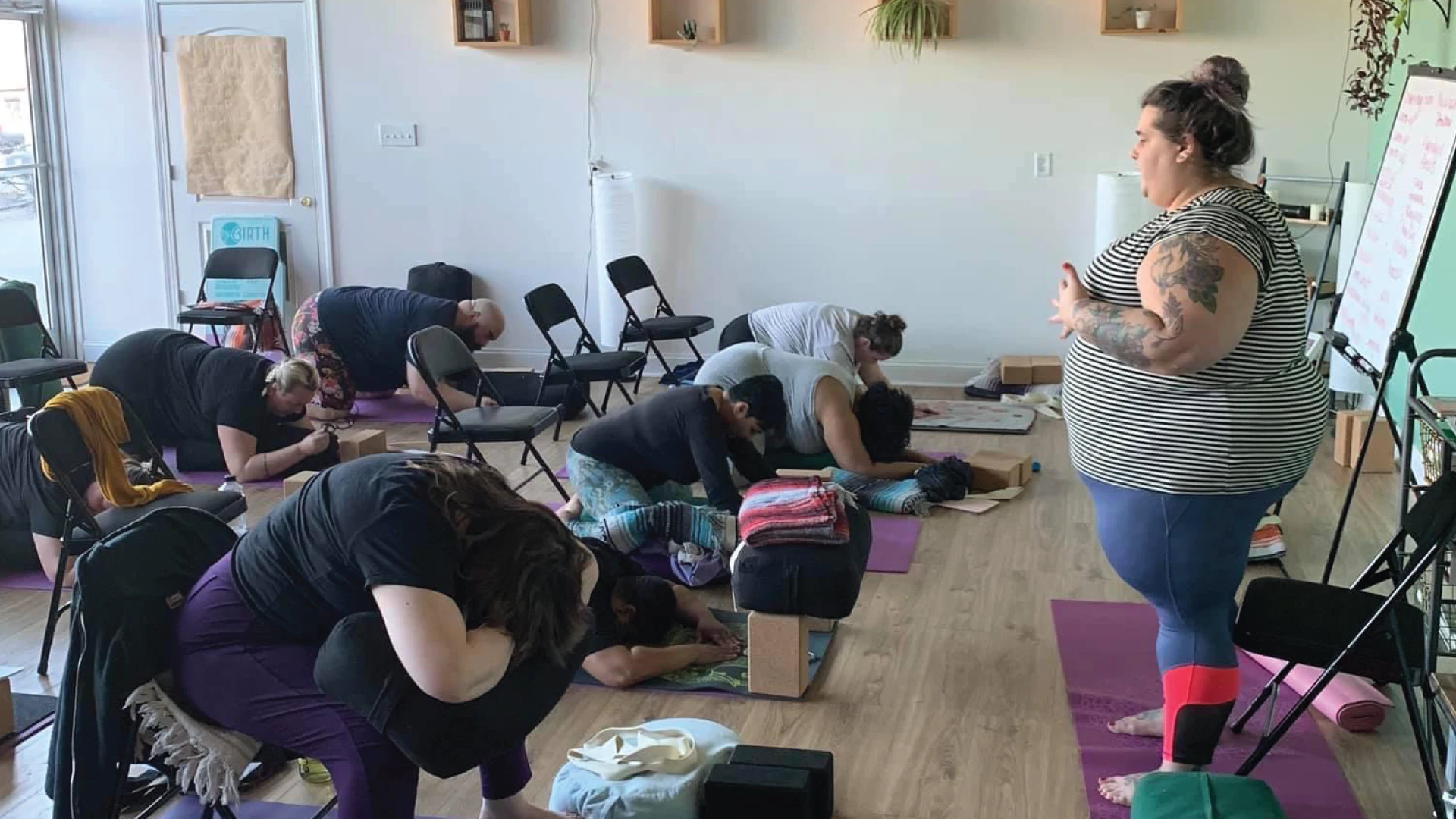 All of this is to say that the acceptance found within online communities is there because marginalized folks have set the tone. Practicing online has always felt safe and nurturing for us because dominant culture’s arbitrary rules don’t apply there. As I’ve mentioned, I didn’t step foot into a brick and mortar yoga studio until I attended Amber’s Body Positive Yoga teacher training. I was terrified, acutely aware of the trauma built up from years of feeling shame about my body from the judgment placed on me, and from the years of literally trying to squeeze my body into spaces not built to support it.
