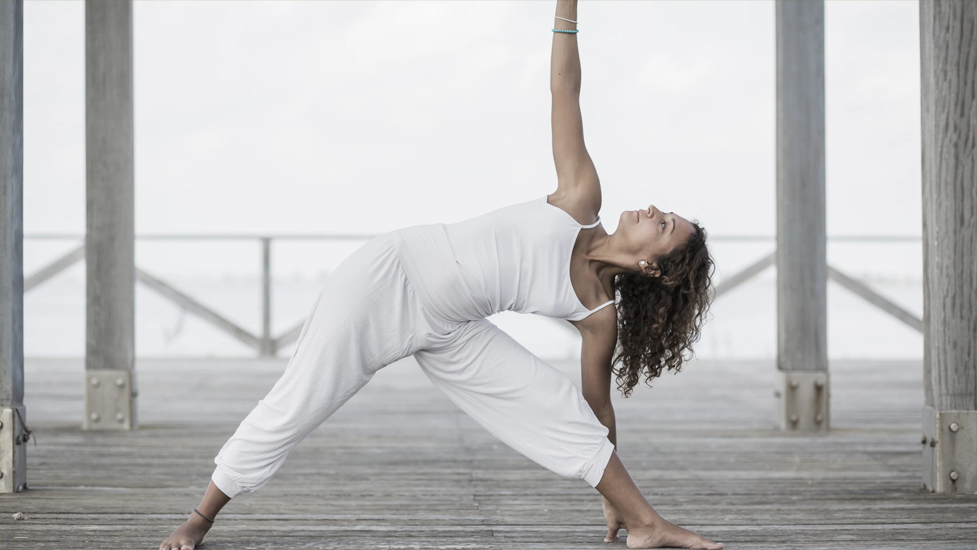 For quite a while I was so focused on lengthening and opening my upper body in triangle (trikonasana) that I forgot about my lower body entirely. It wasn’t until I practiced this pose one-on-one, with a good friend and fellow teacher, that I realized a serious blind spot. She pointed to my front knee and I looked down to see that it was hyperextended (my joint had gone “past straight,” beyond a healthy range of 180 degrees). But because nothing hurt and there was no sensation whatsoever in that knee, I thought all was well-aligned. Then she placed a block under my bottom hand and told me to bend my front knee ever so slightly, flex my toes, and then to engage my quad as I worked to lengthen my front leg. I quickly realized that this simple act of flexing my toes made it so I could lengthen my leg without going into hyperextension. Suddenly I also felt more stable; both of my legs were active and strong.