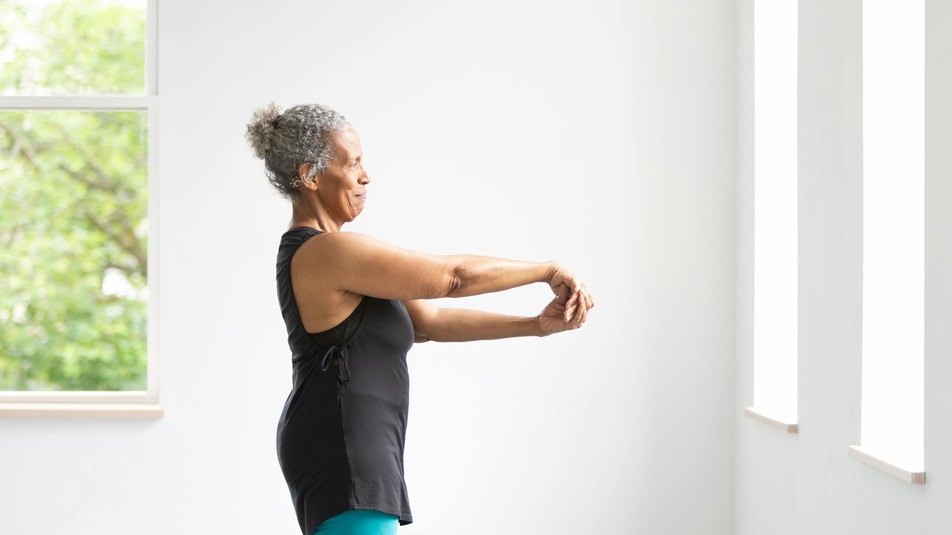 In addition to sharing his tips below about which poses you may need to steer clear of or adapt if you have tennis elbow, Reif suggests a few therapeutic stretches you could also integrate into a yoga practice, since traditional yoga poses may not alleviate your discomfort.