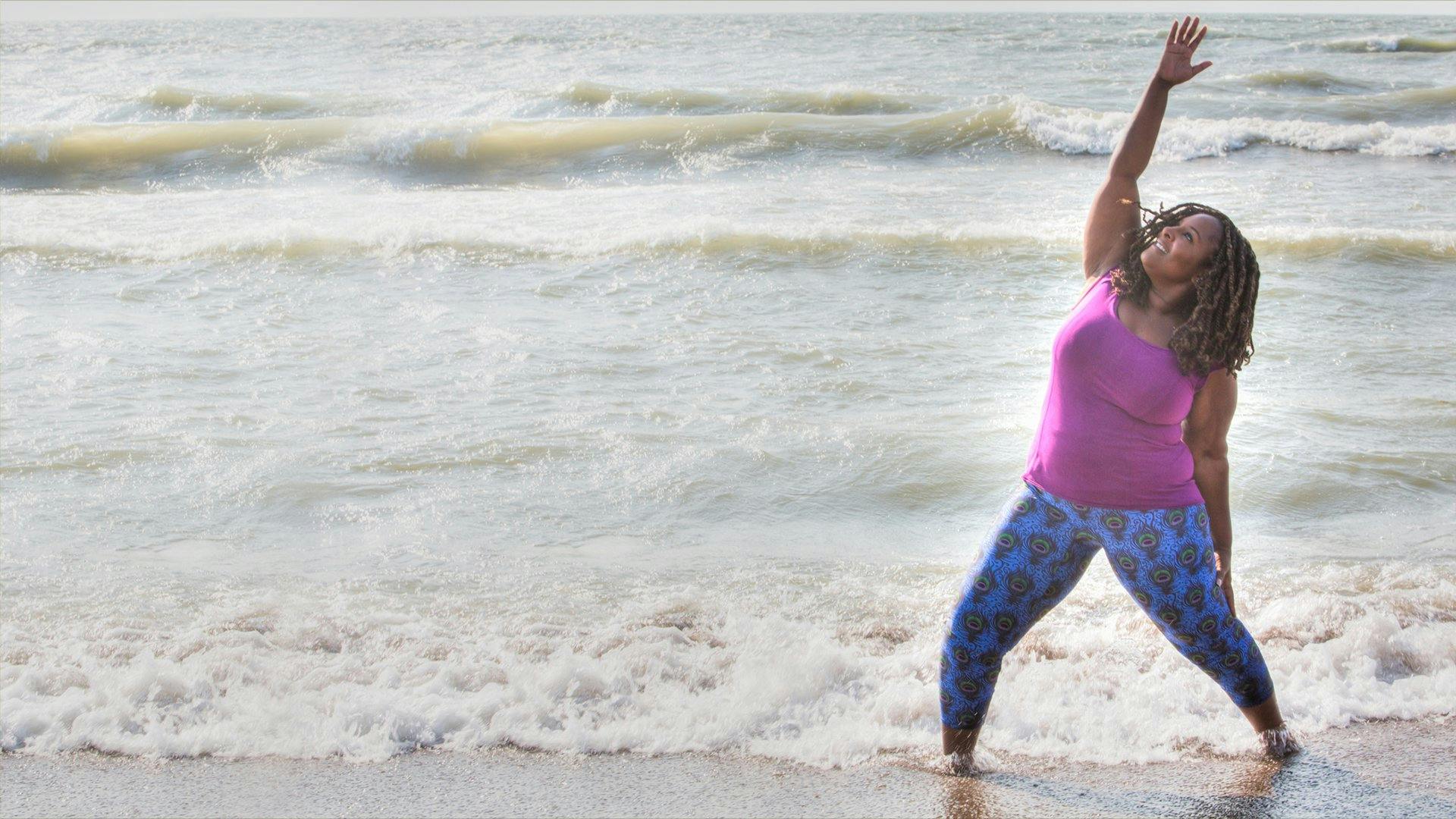 One of the ways I stay consistent is to get spontaneous by doing yoga in unconventional spaces. And my favorite unconventional space is the great outdoors. Where I live, the opportunity to do yoga in the great outdoors is fleeting, and I want to drink it in as much as possible while I can. I love to walk as part of my mindfulness practices, and I’ve been known to throw down a sun salute while waiting at crosswalks. And it can be especially magical to practice outside at sunrise when the world is quiet, and everything is awakening.