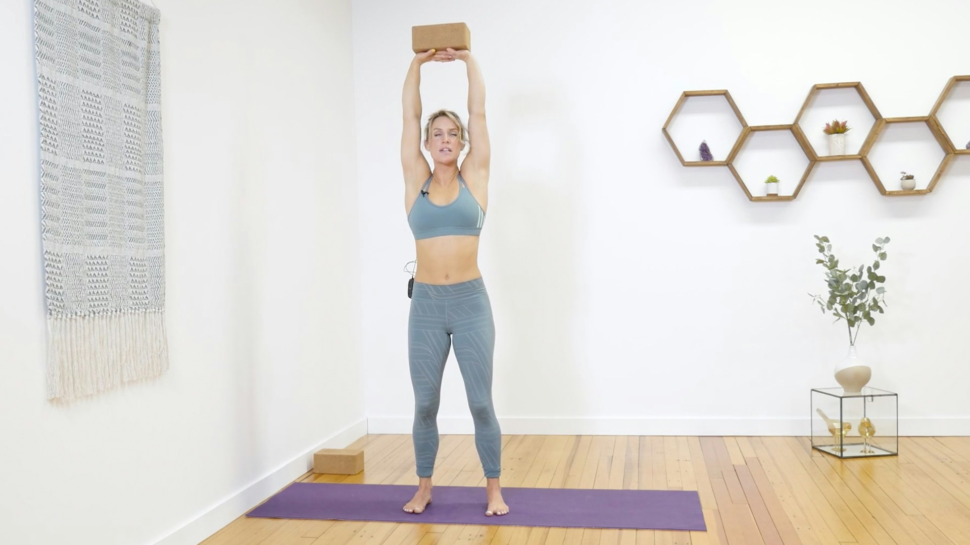 Prep for handstand with this hamstring- and shoulder-opening practice. You’ll begin with a deep forward fold at the wall. From there, you’ll practice holding a block above your head to stretch your arms and open your shoulders before moving on to single-leg balance poses (on a block). Finally, you’ll come to the wall to practice kicking up into the peak pose. Enjoy this short, fun inversion practice!