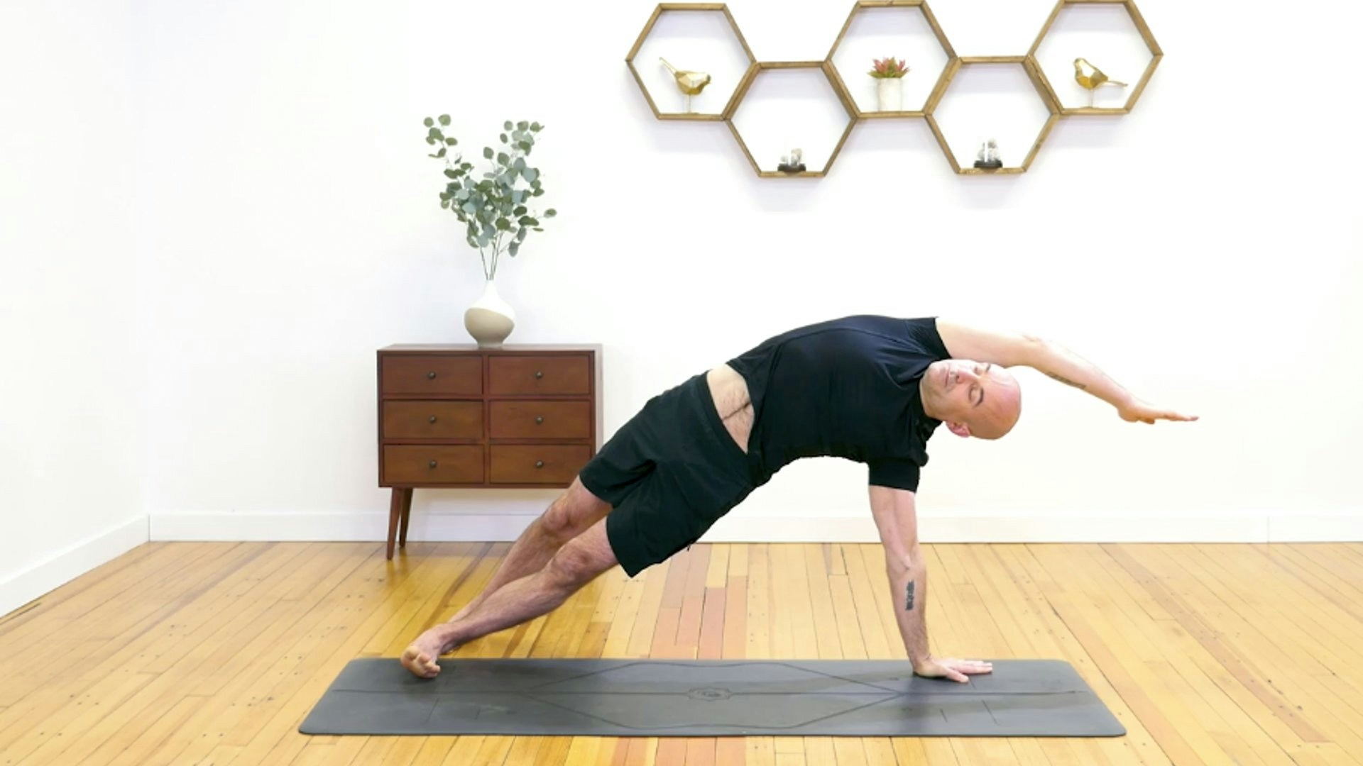 Build strength and stability in this grounding vinyasa class. After a centering practice, you’ll do classical sun salutes, a squat sequence, a series of dynamic lunges, side plank variations, lunge twist variations, and more.