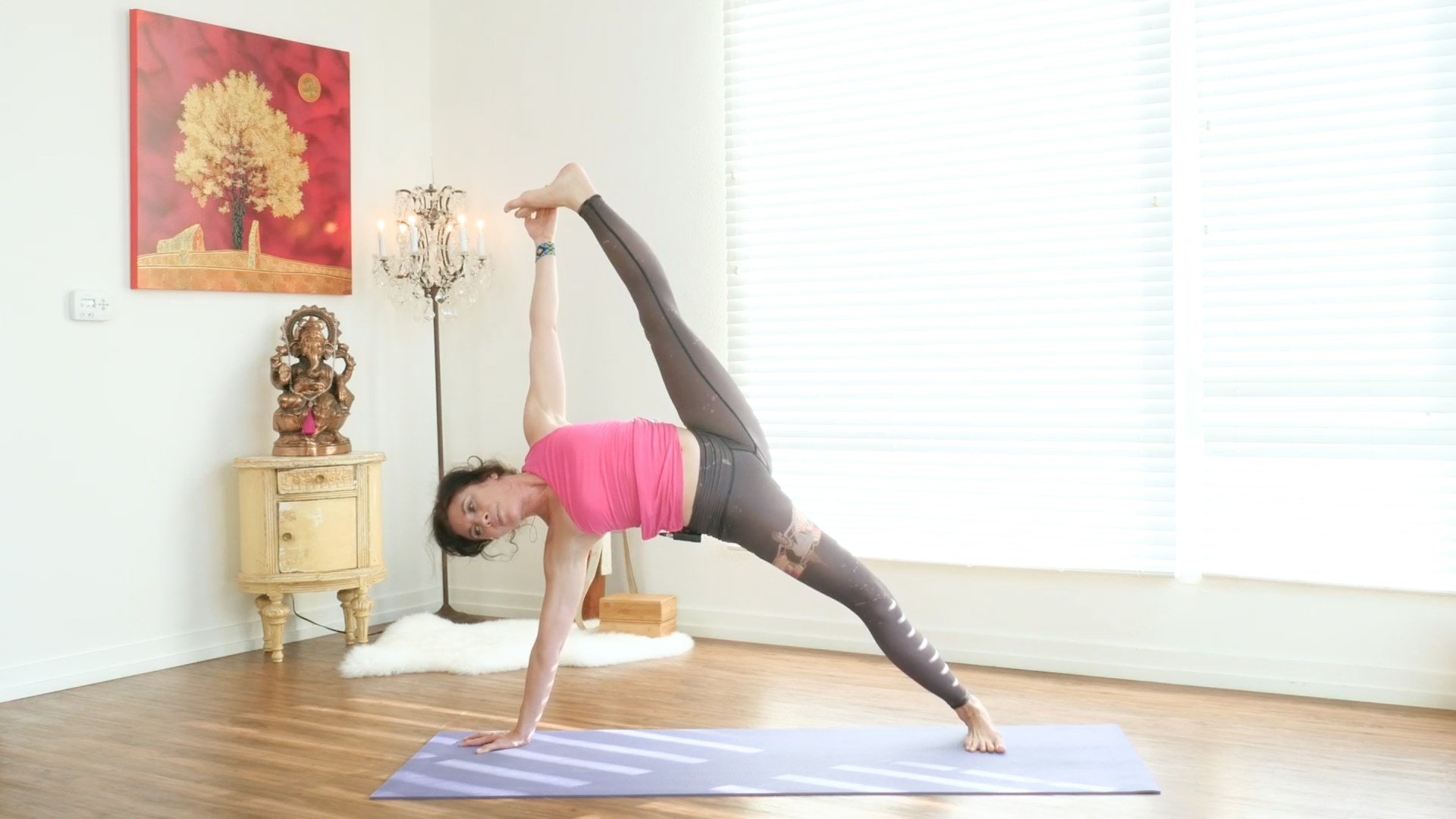 If you’re the kind of person who loves to wake up and jump right into practice, you’ve come to the right place! Start with a few rounds of the Gāyatrī Mantra and some seated stretches. You’ll go straight into high lunges, sun salute variations, twists, heart-openers, hamstring stretches, and more. Enjoy hanumanasana (monkey pose, or full front splits), vasisthasana (side plank), and urdhva dhanurasana (wheel pose). After moving your body completely, take savasana or seated meditation on your own. Leave this class feeling vibrant and ready for the day!