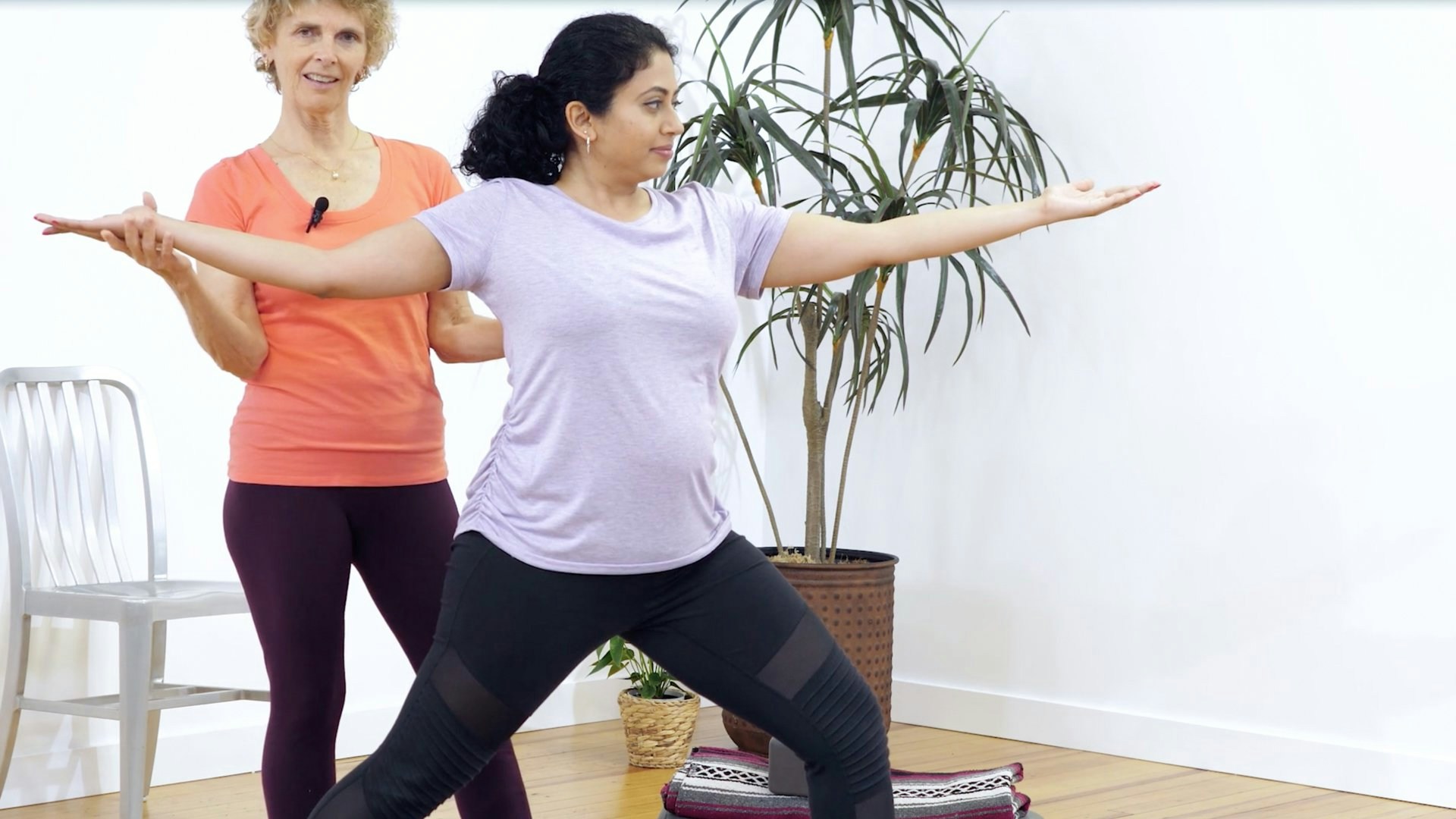 Cultivate an awareness of your heart’s strength and receptivity in this warrior l, ll, and lll sequence. If you think you might want support in warrior lll, have a chair on hand.