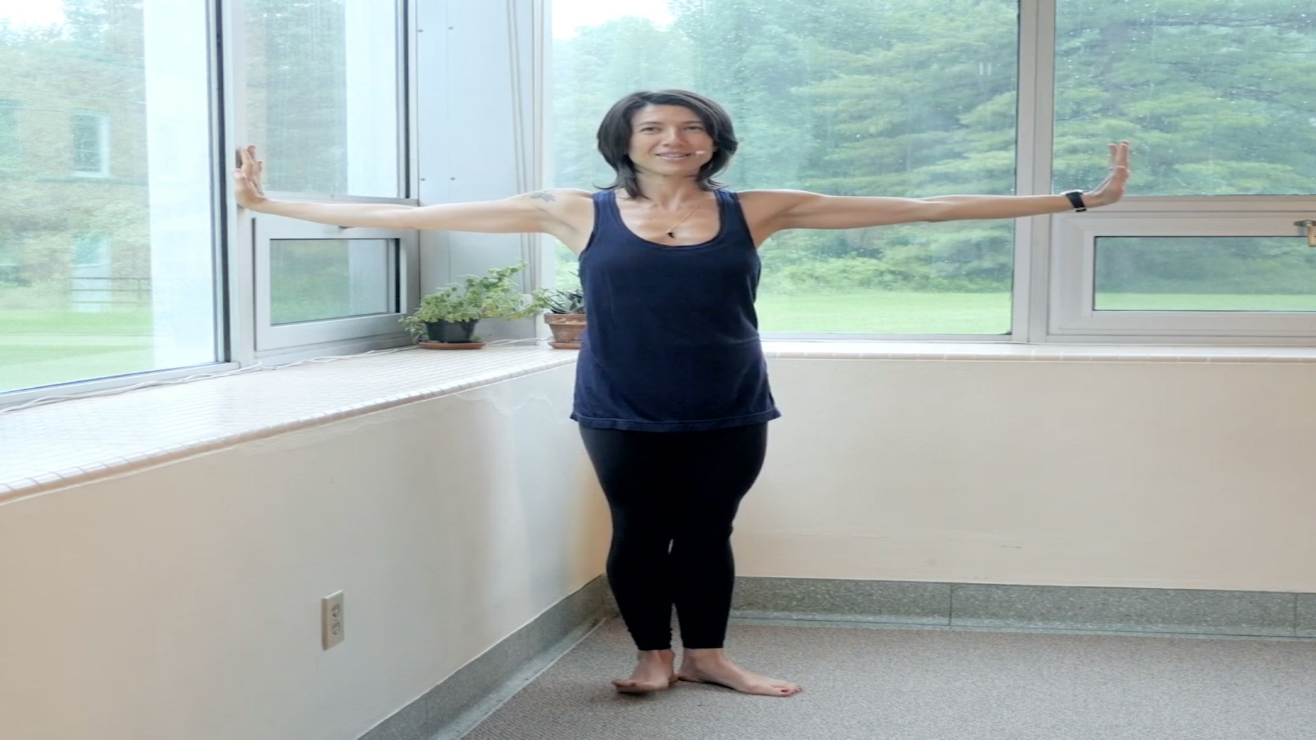Desk job got you in a (literal) slump? This single-shoulder stretch releases the muscles of your hands, arms, and shoulders. All you need is a wall!