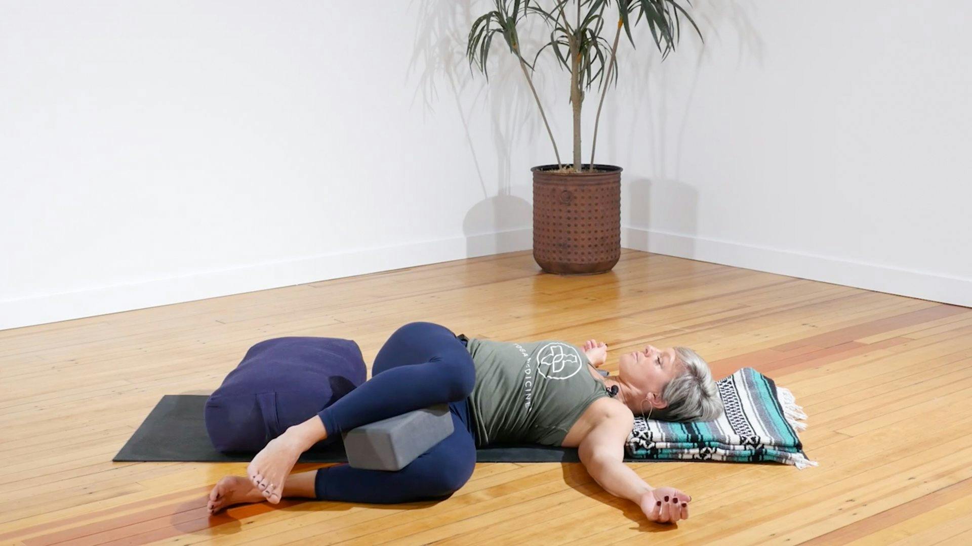 After a long and challenging day, restore yourself with this calming practice to relieve tension. You’ll relax into a bolster-supported savasana, soften into supported twists, do prone belly breathing and hip opening, and more, enjoying your breath all the while. At the end of class, you will be guided into a body scan as you rest in savasana once more.