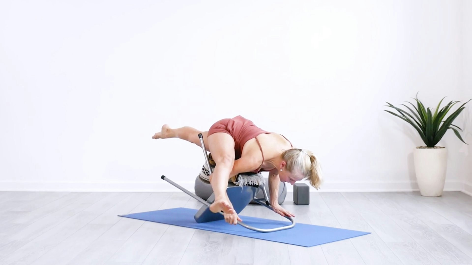 In this playful class, you’ll work toward putting eka pada koundinyasana I and II (or variations of them) together in a flow. You can do this class even if you’re working with a shoulder injury—there are plenty of hands-free poses and transitions to explore—and Carrie offers variations throughout so that you can customize this practice to fit your needs and goals. Also, you’ll learn how to practice chair-supported versions of both arm balances before moving to the wall.
