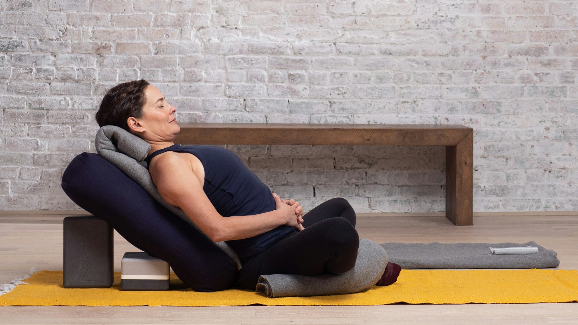 A snuggly, feel-good practice to counteract our fast paced, productivity-driven culture. Get cozy with two restorative poses. Each pose requires some setup, then you'll have plenty of time to sette in and rest while gentle music plays in the background.