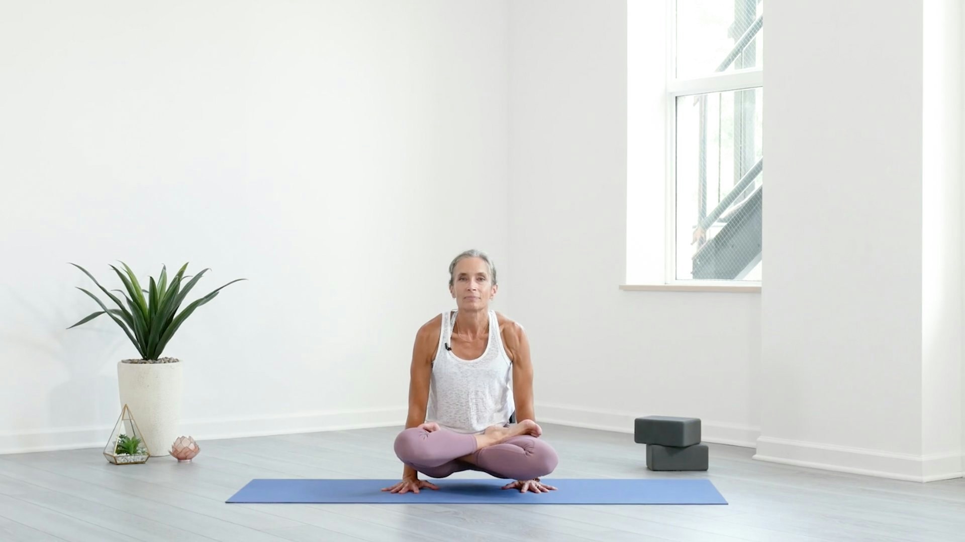 You’ll conclude with a palming practice to rest your eyes, followed by fire log pose, where you’ll sit quietly.