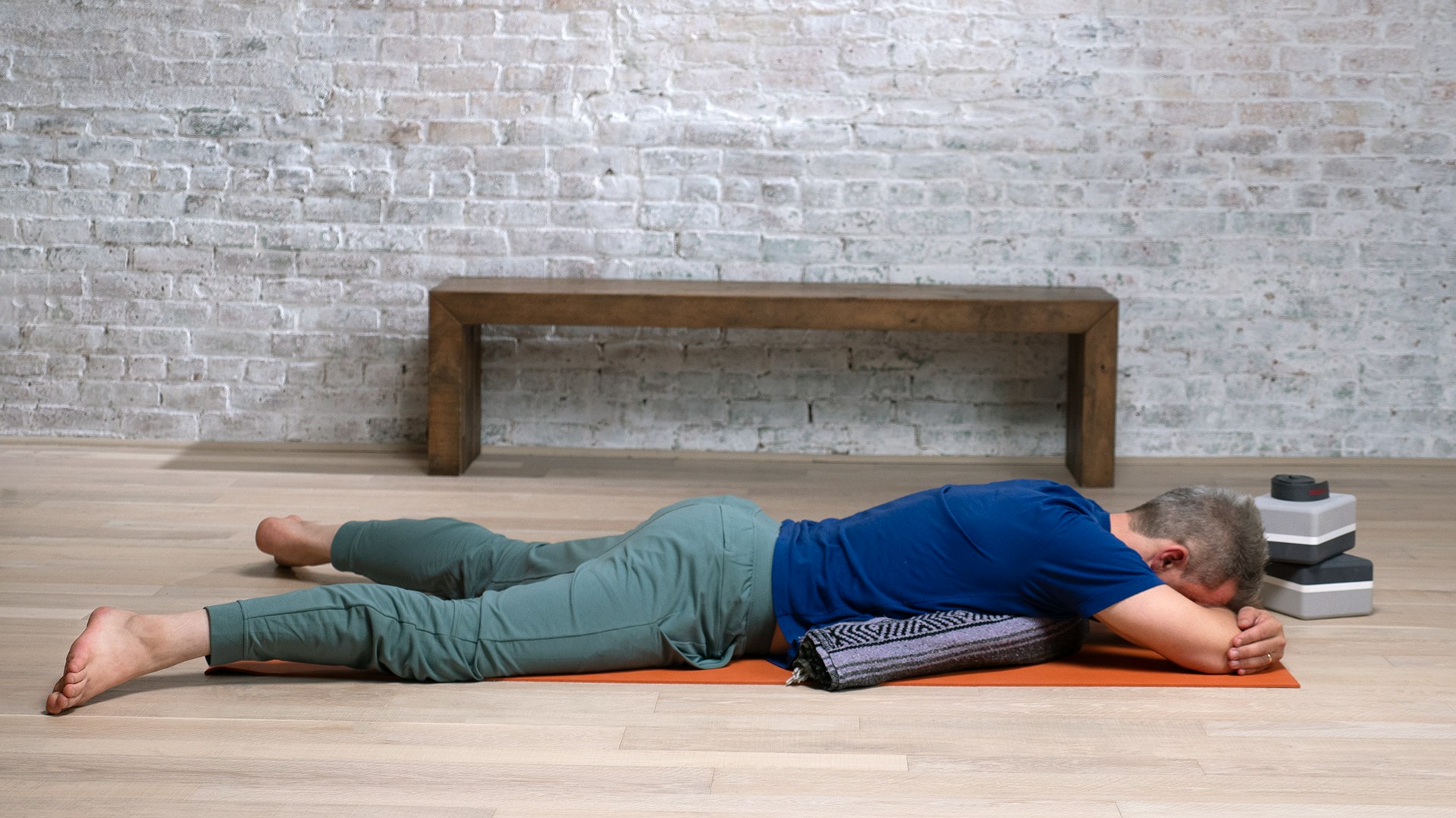Props: 2 blocks, 1-2 blankets, strap, weighted cushion (optional)