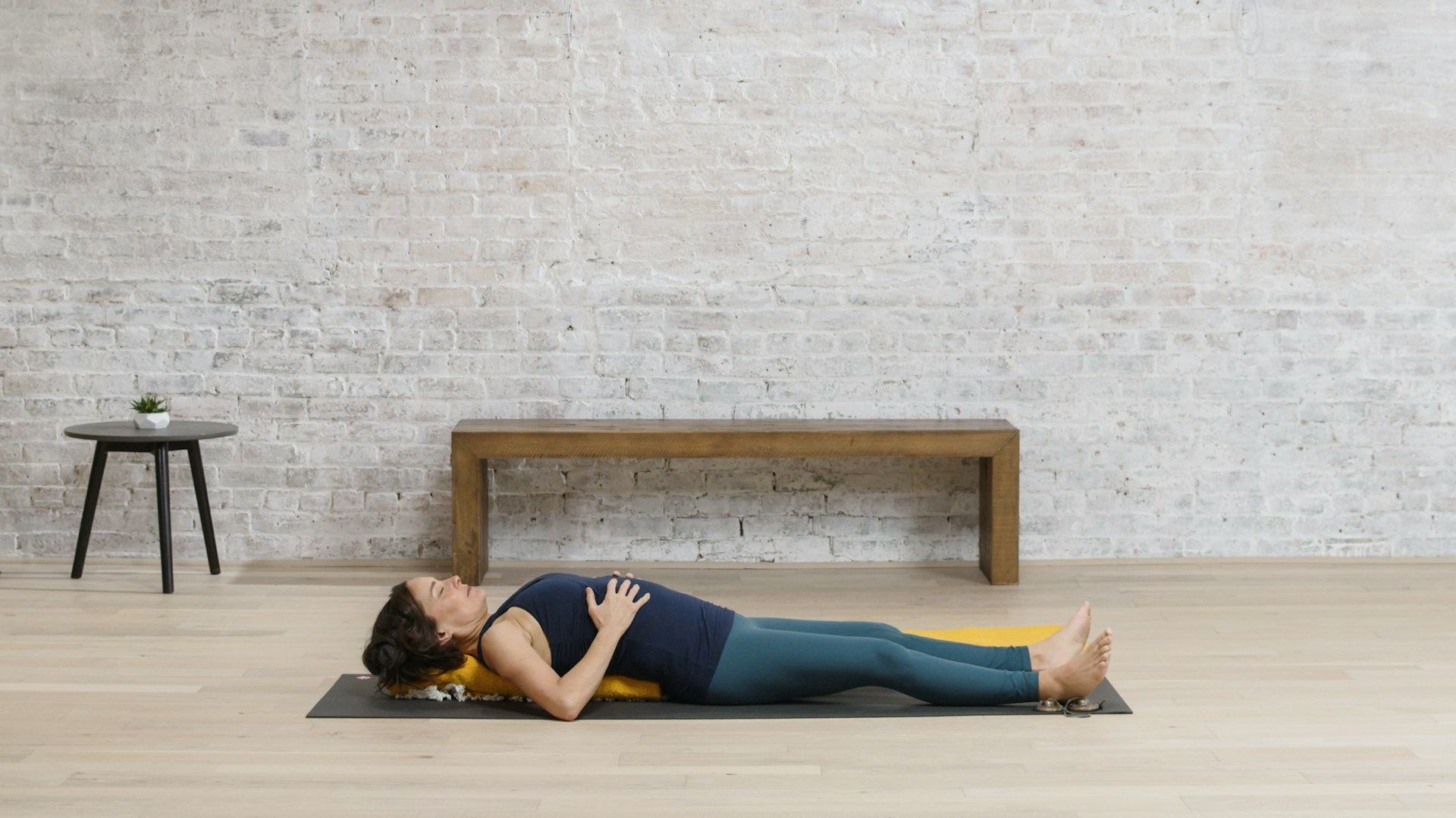 Boost your ability to breathe deeply and feel the calming effects. Start with side-stretching child's pose to open your ribs, and then lay down for dirga pranayama (three-part breath).