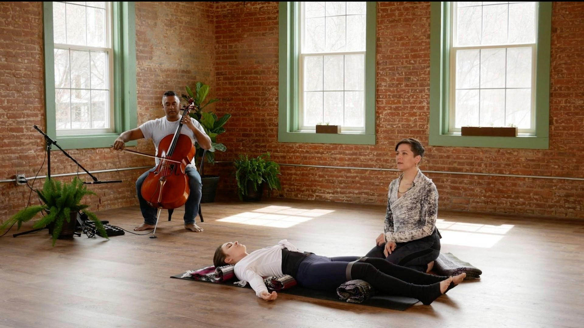 Set up in a soothing restorative savasana and release tension systematically with a calming body scan that begins at the feet and moves up to the head. Feel your muscles softening away from your bones as you’re held by the peaceful sound of cello music played by Nirmal Chandraratna. Join this class after your yoga practice or when you need restoration.