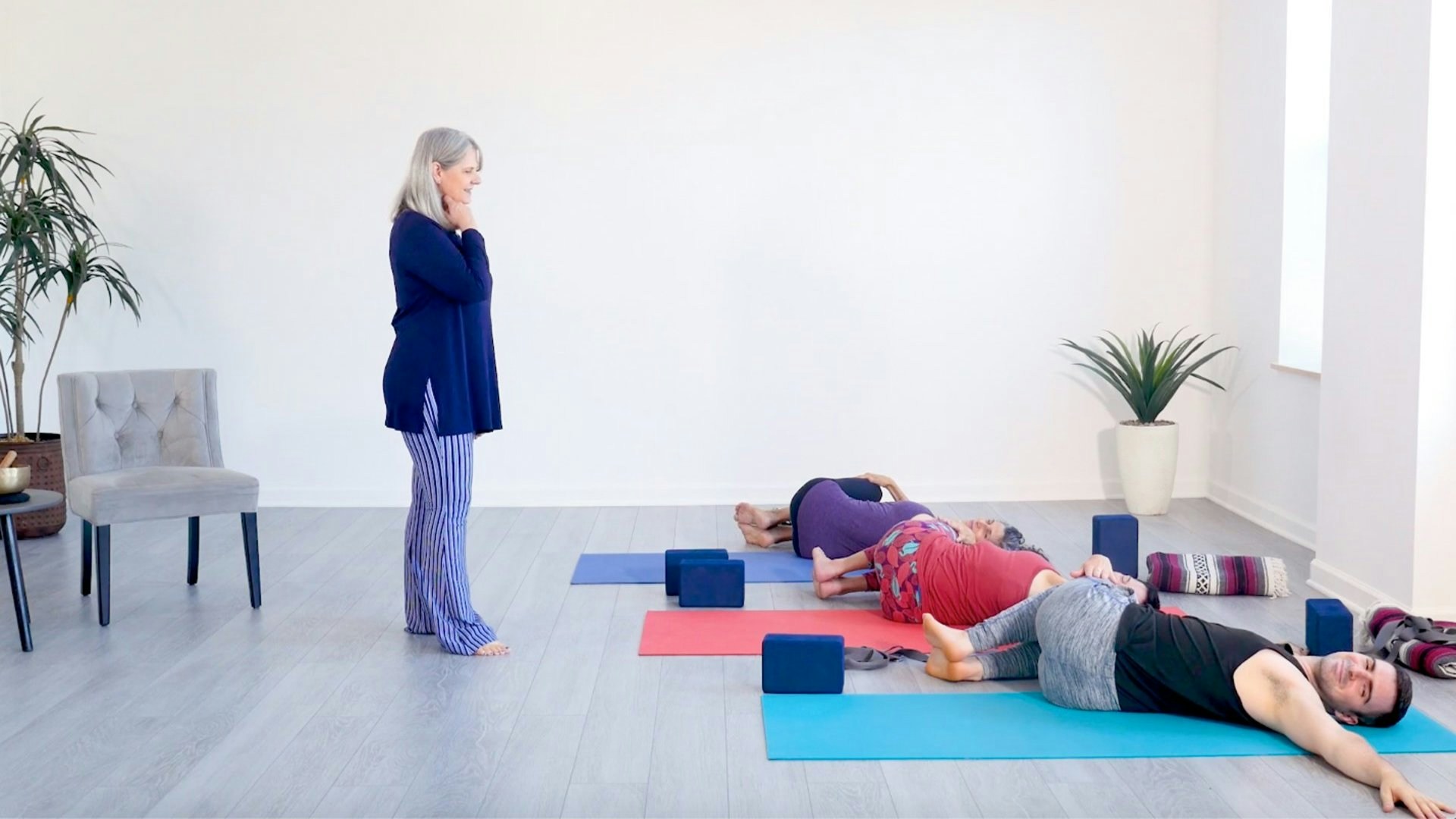 In this well-rounded whole-body sequence, bring your awareness and experience of tadasana (mountain pose) and savasana into every pose to feel stable and grounded throughout the practice. Focus on the moment rather than grasping or straining, especially as you do the more challenging poses. Begin with a supine warm-up then move into an extended flow that include side planks, squats on a block, a yoganidrasana variation, ardha padmasana (half lotus), and more. You’ll conclude with block-supported backbends, sweet wind-down stretches, and savasana.