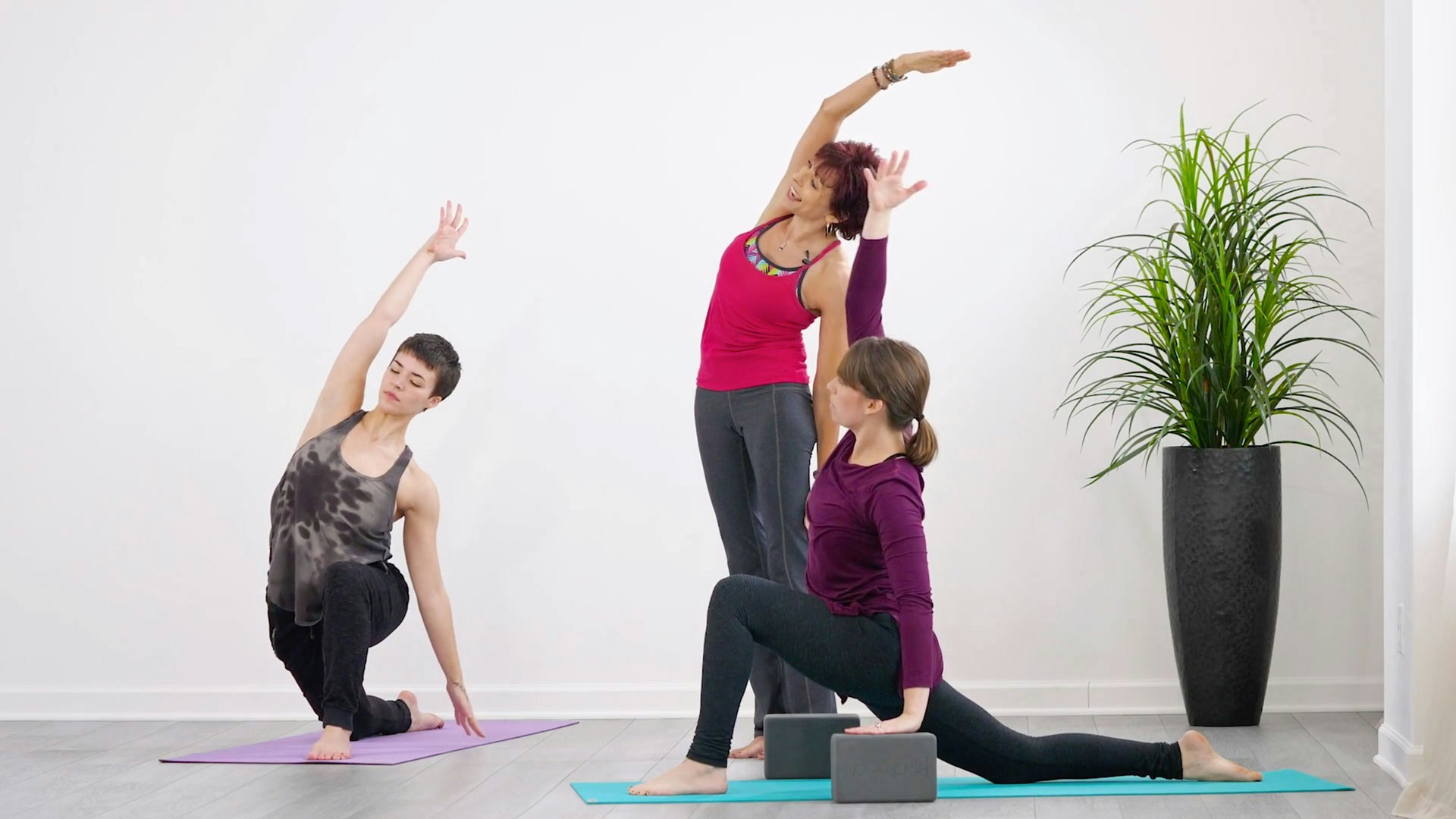 Roll out of bed and wake up with positivity! This slow-flow practice features sun salute variations that integrate side body stretches and is an ideal go-to before you reach for your morning cup of coffee. It can also give you a quick boost midafternoon when your energy and attention start to fade.