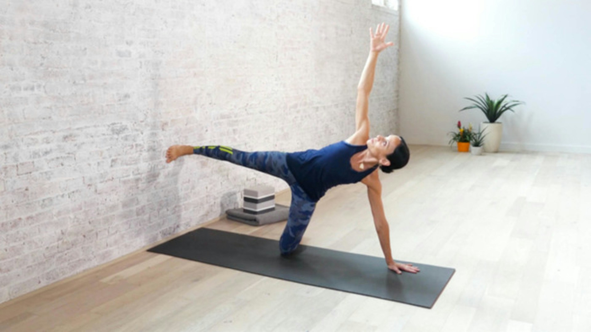 Explore a full-body strengthen and release class which you’ll do entirely at the wall. You’ll begin with a standing warm-up for your shoulders, back, and legs. Then you’ll build heat and endurance with lunge squats, chair pose, extended side angle pose, and more. Finally, you’ll wind down with supine poses like legs up the wall and reclined figure four.
