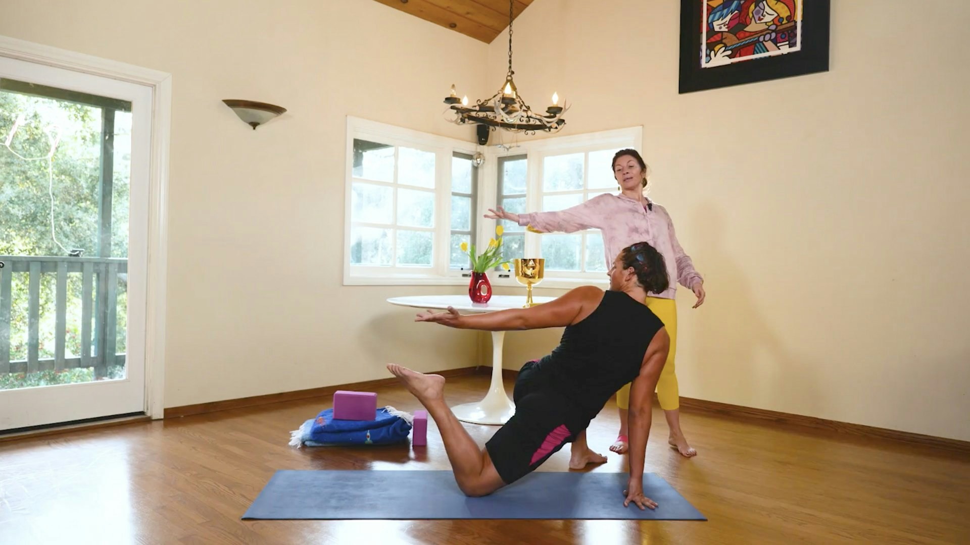 This flow is inspired by Hanuman, a Hindu god who represents devotion and dedication. This sequence is designed to lengthen your spine, strengthen your body, and open your heart. It begins with mudra, chanting, and pranayama (breathwork). After that comes a progressive sequence that includes sun salute A, locust variations, lunge flows with lion's breath, a "Hanuman thigh twist and stretch," a standing balance flow, camel with a block, and more. Once the active work is over, you'll wind down with easy twists and gentle stretches before concluding in savasana.