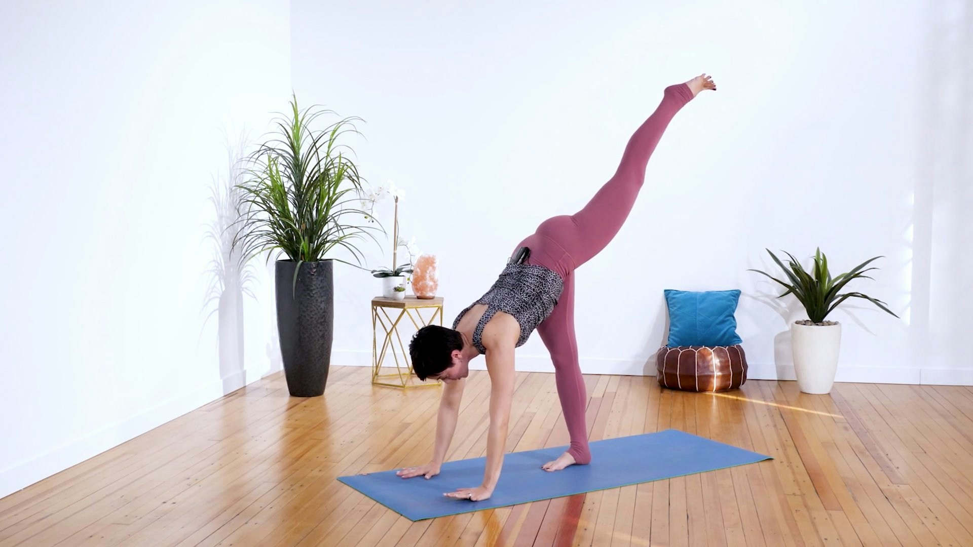 Weave handstand hops into creative standing sequences with this invigorating vinyasa practice. This class includes crescent lunge variations, warrior lll, a humble warrior variation, and more. Conclude with bridge pose and then wheel—if wheel is in your practice—before resting in supta baddha konasana (reclined bound angle pose), followed by savasana.