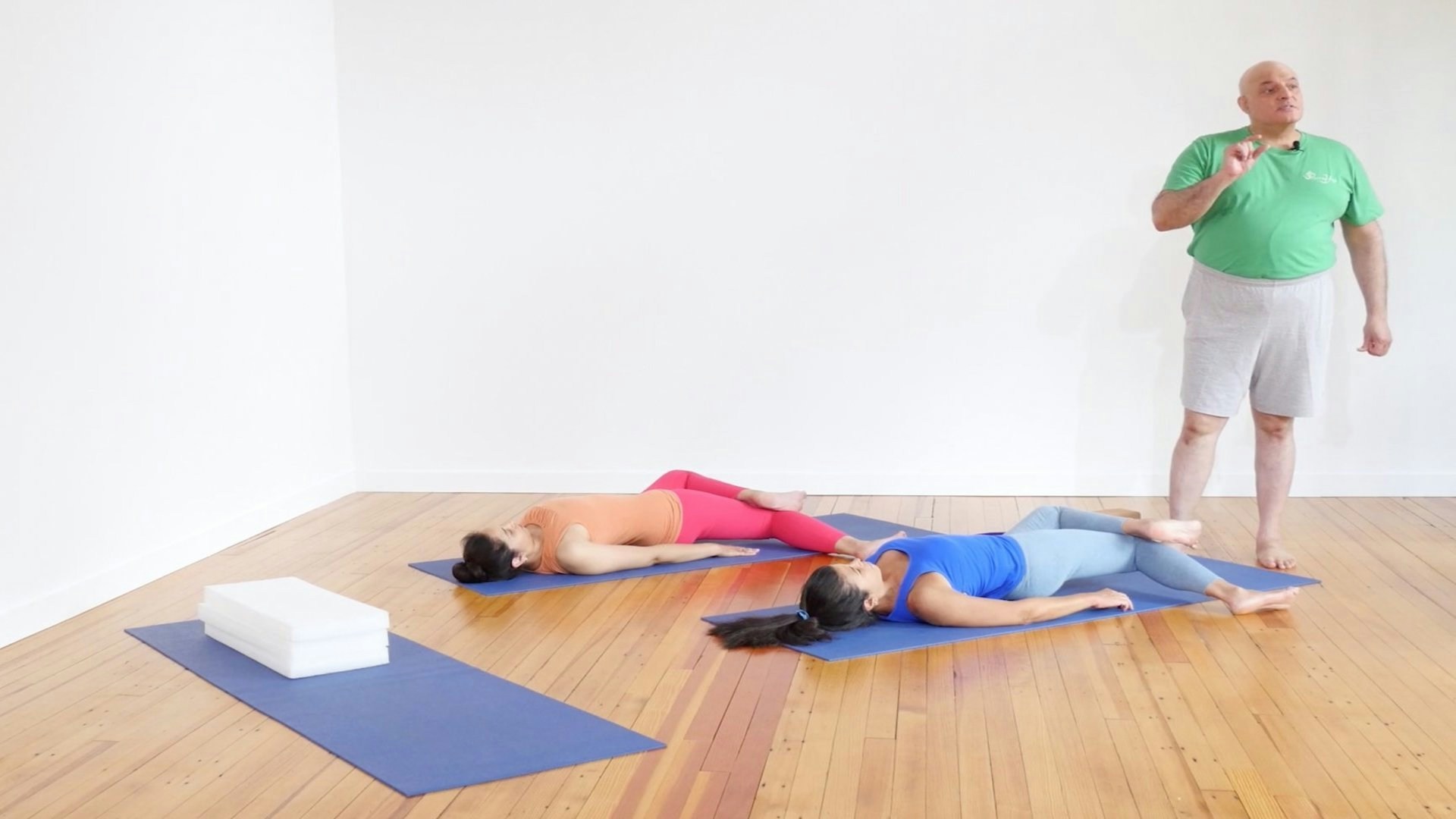 Props: Blanket, bolster, massage balls