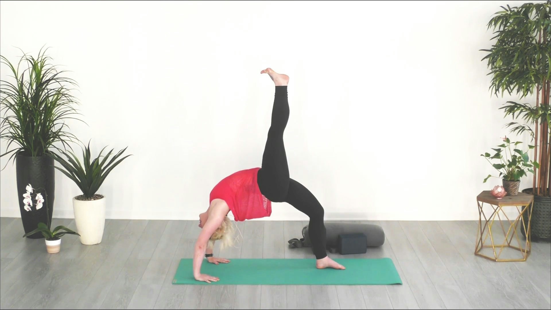 Join Kat for this lively 60-minute backbend class that will help you open through the front of the body (the chest, shoulders, hip flexors, and quads) and also strengthen the back of the body (hamstrings, glutes, and spinal extensors). This sequence includes intoxicated cobra, camel, laghu vajrasana ("little thunderbolt pose"), a wheel pose walkover at the wall, a lizard lunge variation, and much more. Enjoy this creative, fun, and challenging experience!