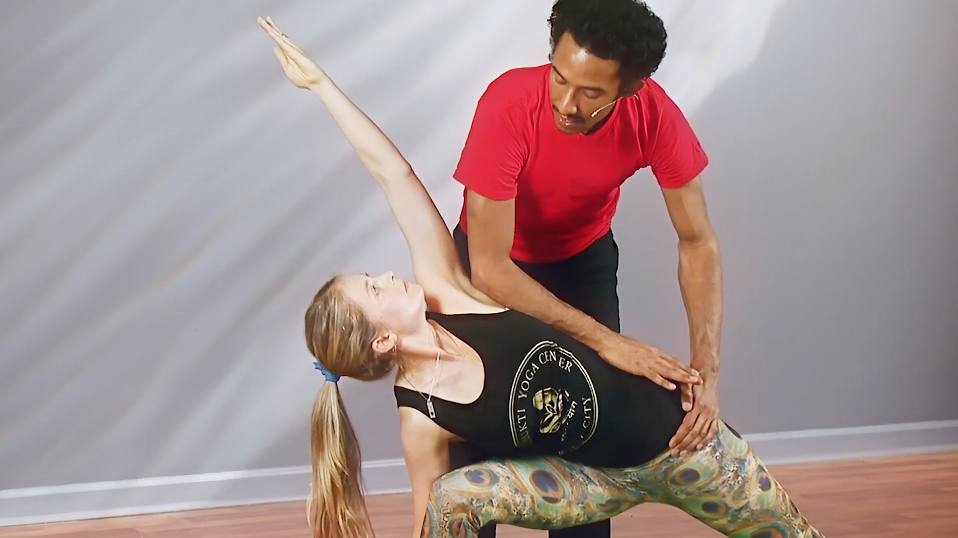 Curious about Jivamukti? Join this class, featuring down and updogs, knees-chest-chin, cobra, twisting chair, revolved side angle, warriors I and II, triangle, side angle, shoulderstand, fish pose, and more. Enjoy!