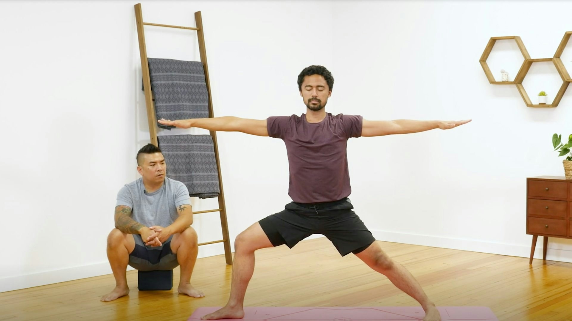 Explore trust by keeping your eyes closed throughout the entire sequence. Begin by walking around your mat to gain a sense of its parameters and then move on to sun salutes, lunge twists, standing poses, and more.