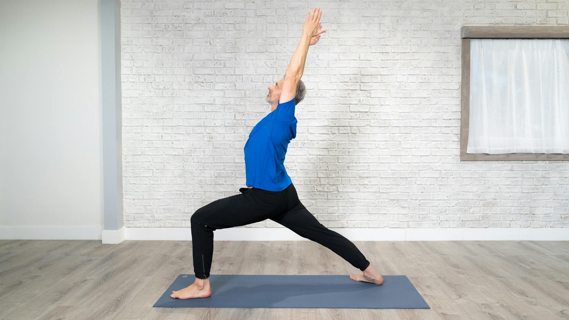 Energize your day with a dynamic sequence of sun salutation variations. This full-body flow weaves in standing poses—like warrior 2, chair, side angle, and lunges—to build strength, mobility, and momentum. Practice ends before savasana, so feel free to close with rest on your own.