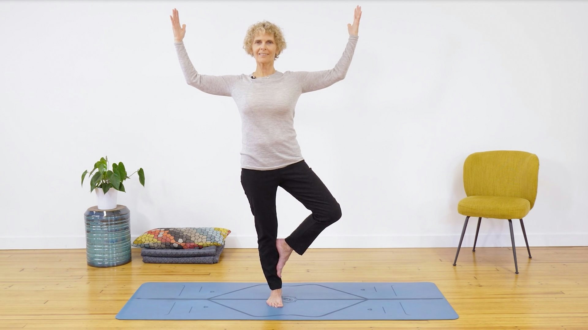 Begin with a calming exploration of cat-cow. Then, with mindful attention to your breath, you’ll do lunges, warrior ll, tree pose, a sphinx to cobra sequence, and more. Along the way, Shari offers suggestions for how to adapt the poses for your body. You’ll conclude with a guided body scan in savasana. Have a chair available or position yourself near a wall if you want or need a little extra support.