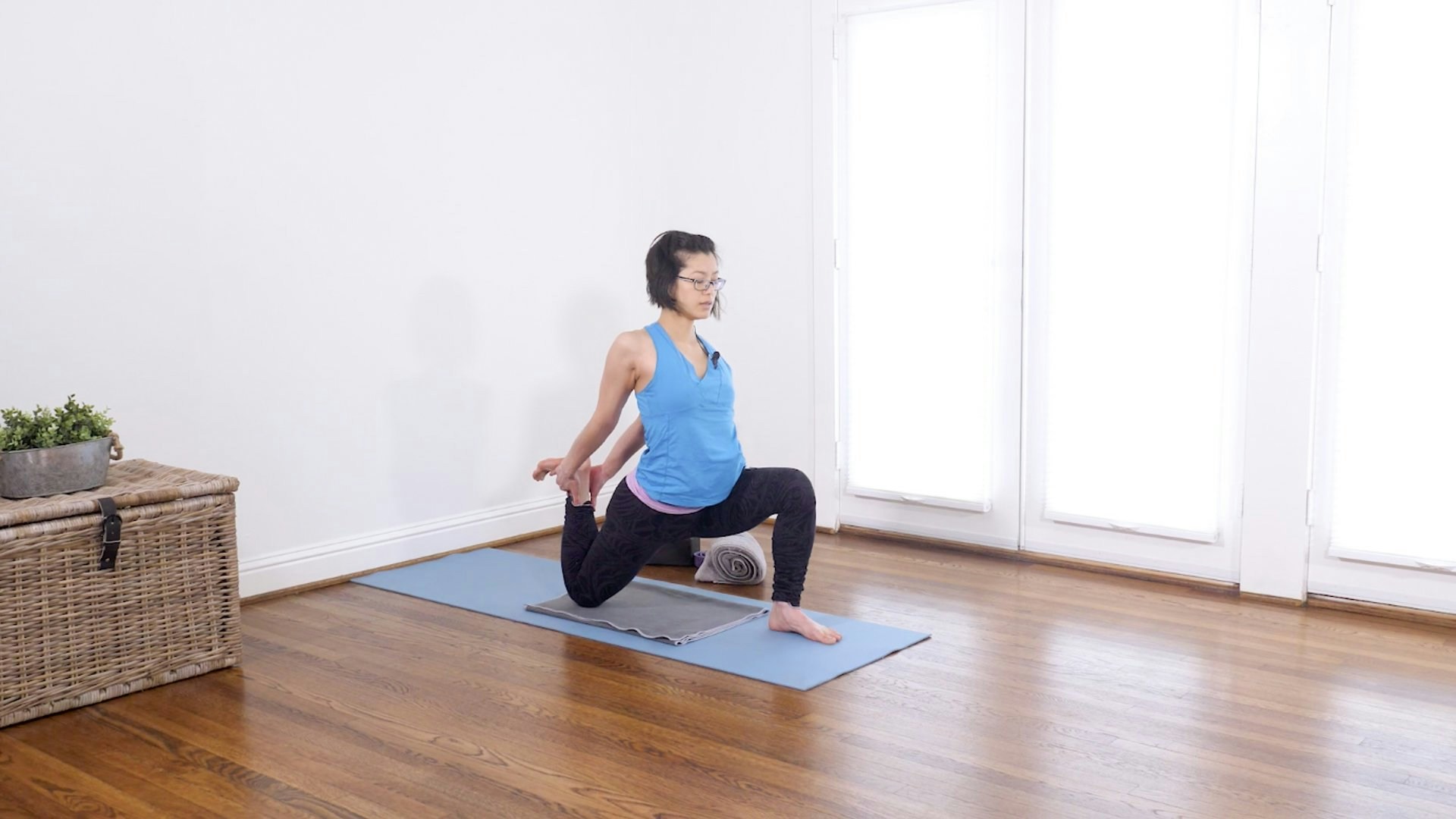 In this heart-centered practice, you’ll focus on opening your upper body as you build strength throughout your whole body. You’ll begin with a heart-focused brahmari (buzzing breath) practice. After that, you’ll do a thorough warm-up of seated side bends, supine leg and core strengthening, and a bridge pose series that includes hip openers.