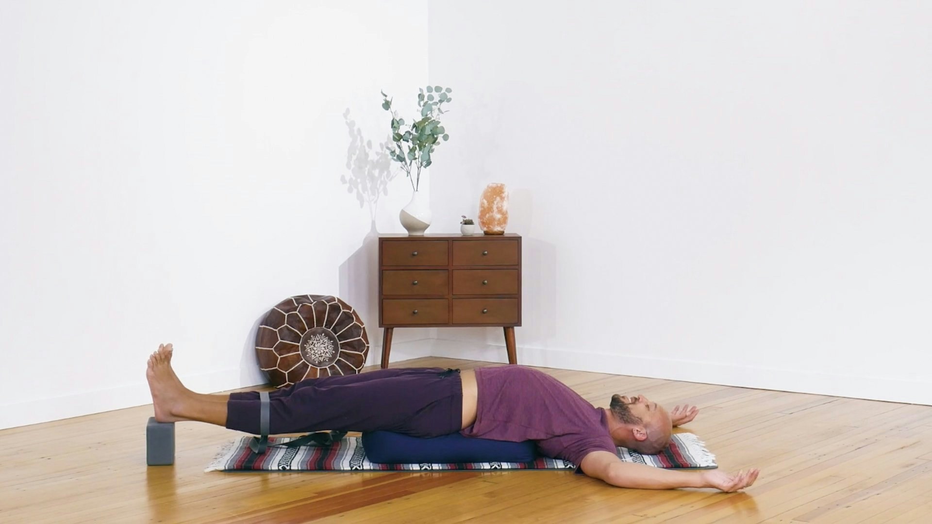 Open your heart and hip with the help of some gentle backbends and leg stretches. After a warm-up, you’ll move into progressive versions of bridge pose using a block. Then, you’ll use a strap for supine hip flexor stretching before concluding in a supported backbend. You will need some blocks, some blankets, and one strap.