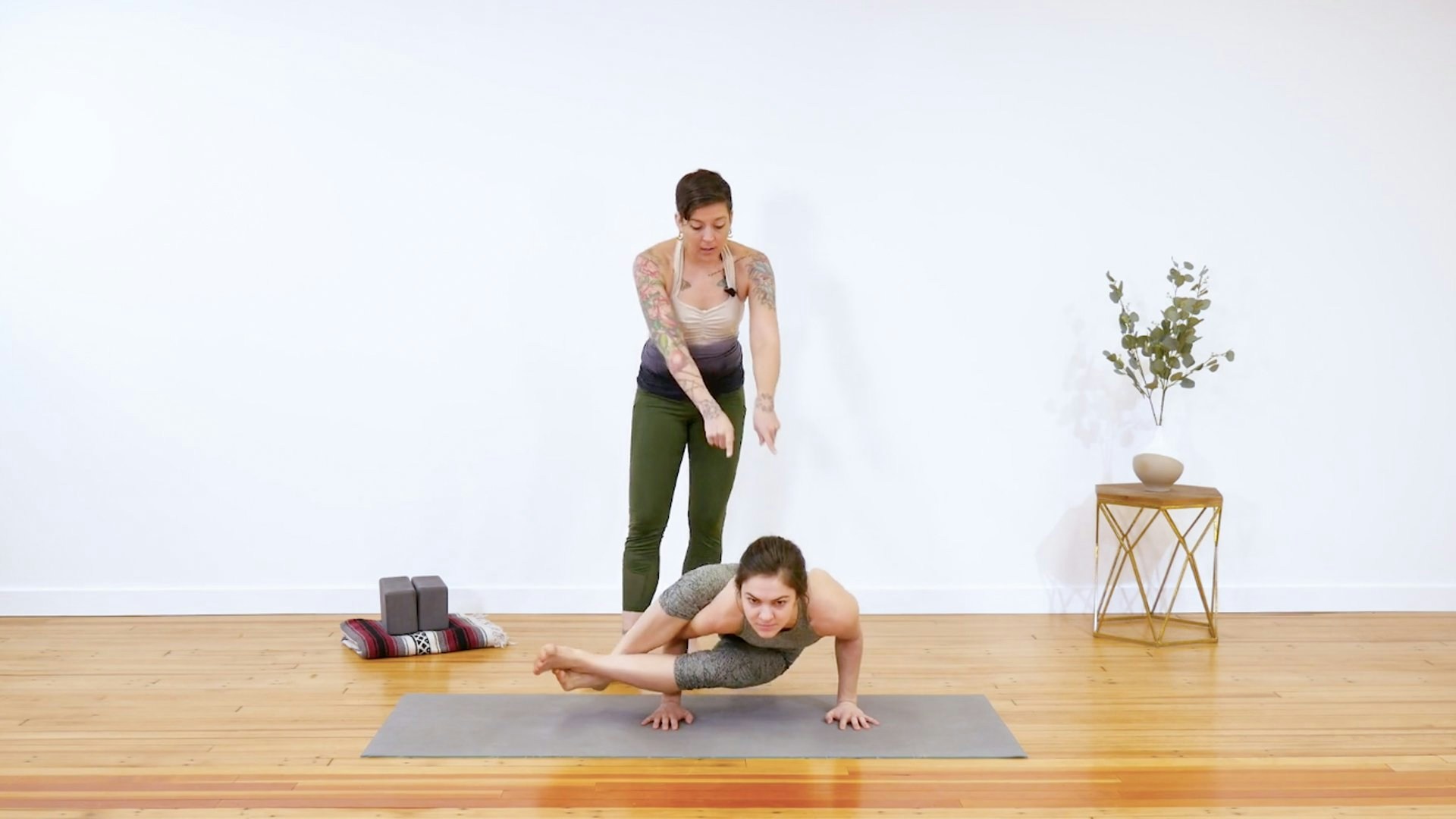 Work toward astavakrasana (eight angle pose). Begin with a chaturanga variation and crow, then move on to a standing series that integrates twists. After that comes focused work in side crow, supine core work (including a supine variation of eight angle pose), and seated hip openers. The finale, of course, is the peak pose! Optional: you may want to do a warm-up before you begin and plan your own cooldown and savasana to close the experience.