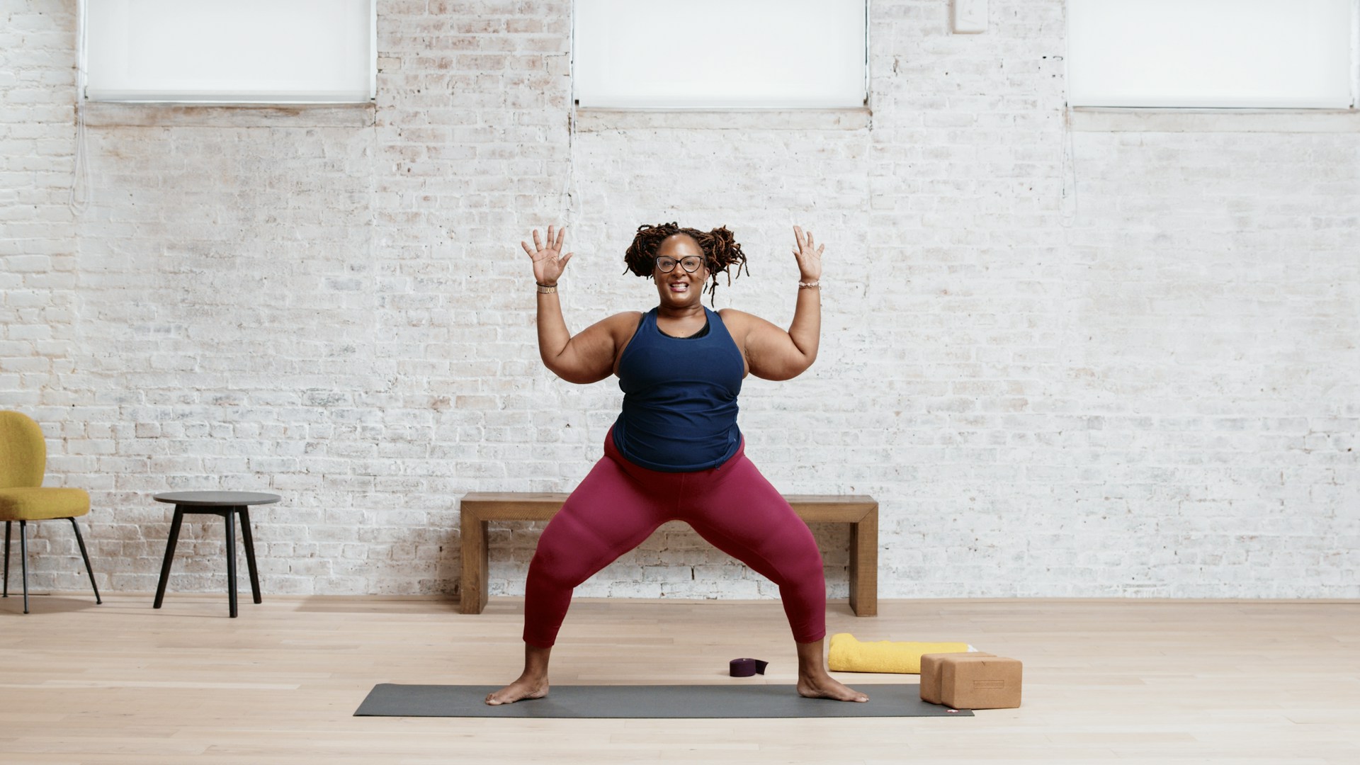 Start on the floor with gentle spinal twists and core work before gradually transitioning into a life-affirming flow sequence that includes lower body strengthening poses like goddess squats, along with hip-opening postures such as skandasana.